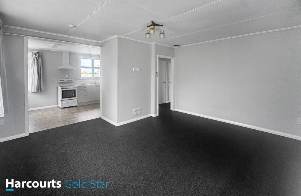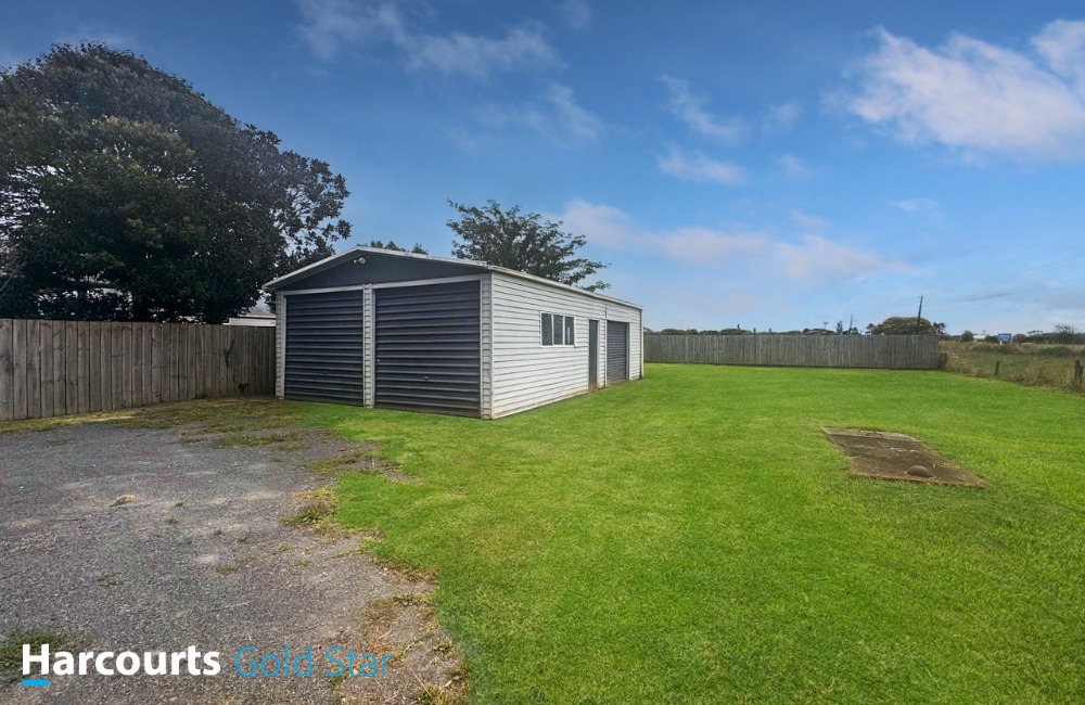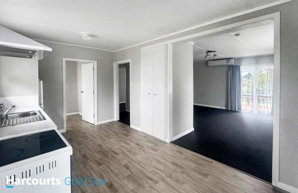 Charming three-bedroom home with open-plan kitchen and dining area seamlessly connecting to the lounge, which features a heat pump for year-round comfort. The property includes a combined bathroom with a shower over the bath, a toilet, and a vanity, along with a separate laundry accessible through the covered entrance. Situated on a spacious 1011m² (approx) section, additionally a large garage that accommodates three cars, complete with a workbench and storage space.