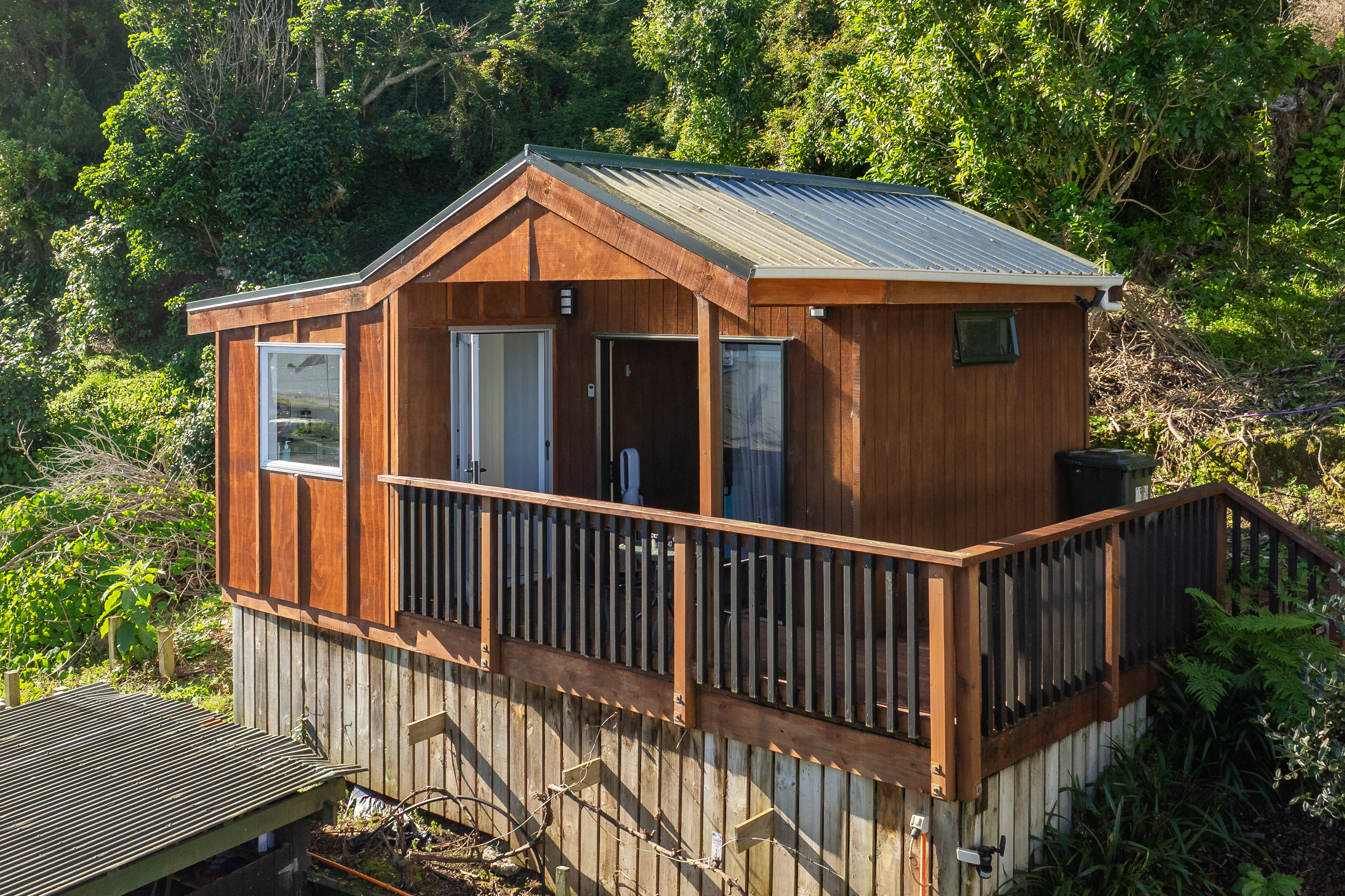 This coastal retreat at 882 Thames Coast Road, Te Mata offer's amazing views at your doorstep, a must-see, seeing is believing views from upstairs and downstairs. The ply-lined cabin located on the property has a consented full bathroom with wet floor tiles and a separate WC and a comfy separate room.