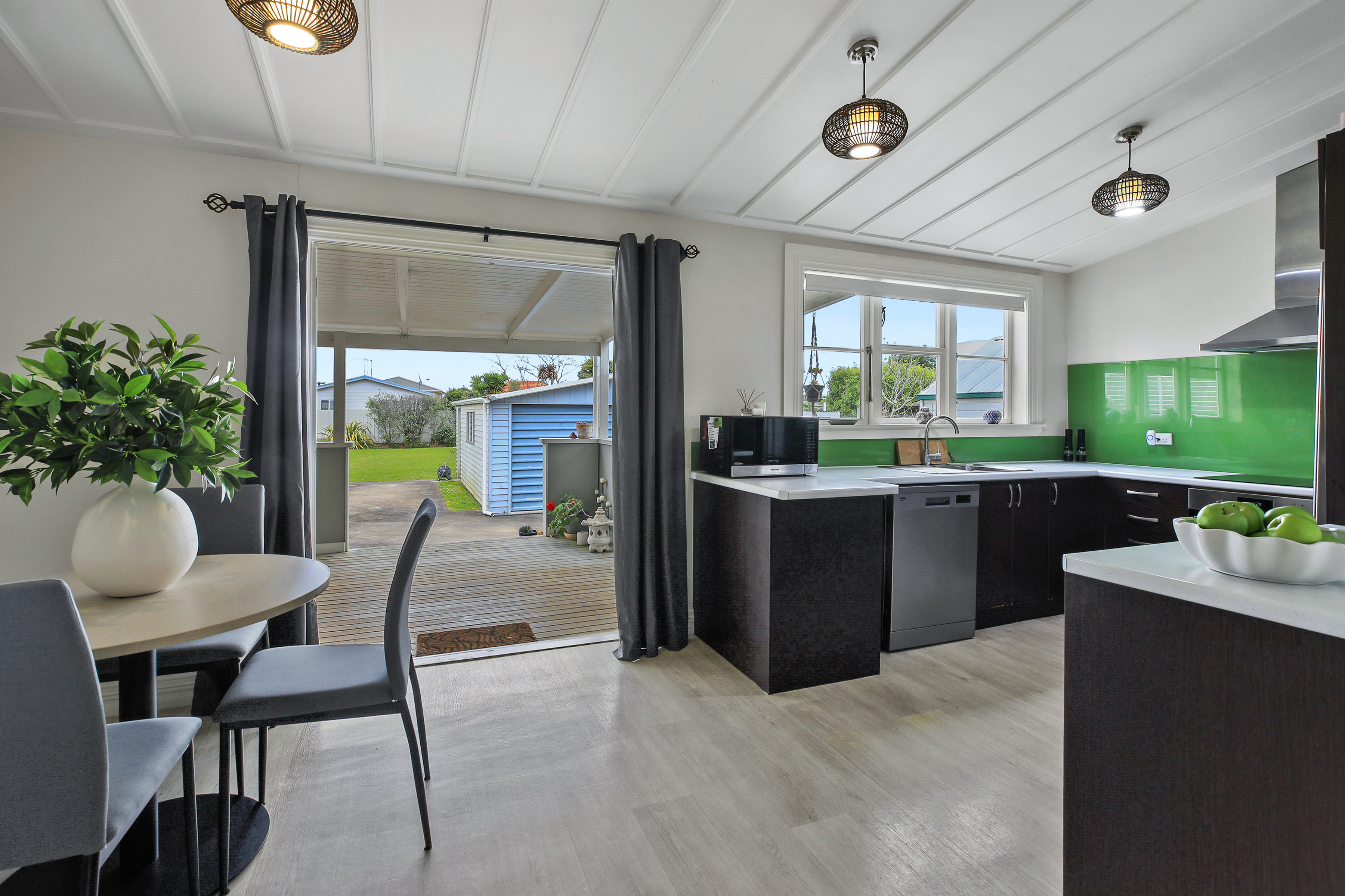 Set on a 1007 sqm section, this property features a wide driveway with a double garage, ample room for a boat and camper. A large deck to the rear features a pizza oven and a chunky Macrocarpa table, making entertaining a pleasure.