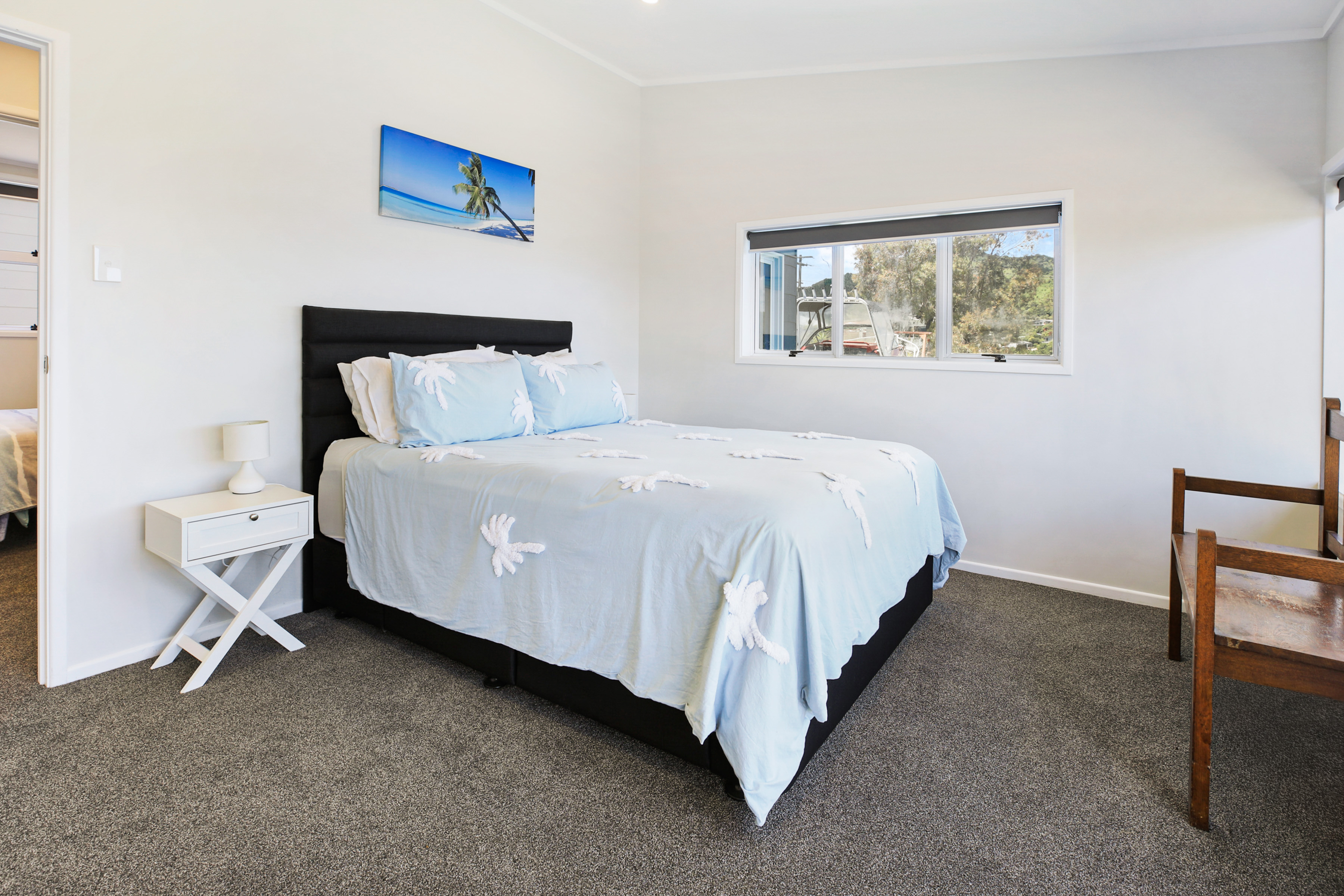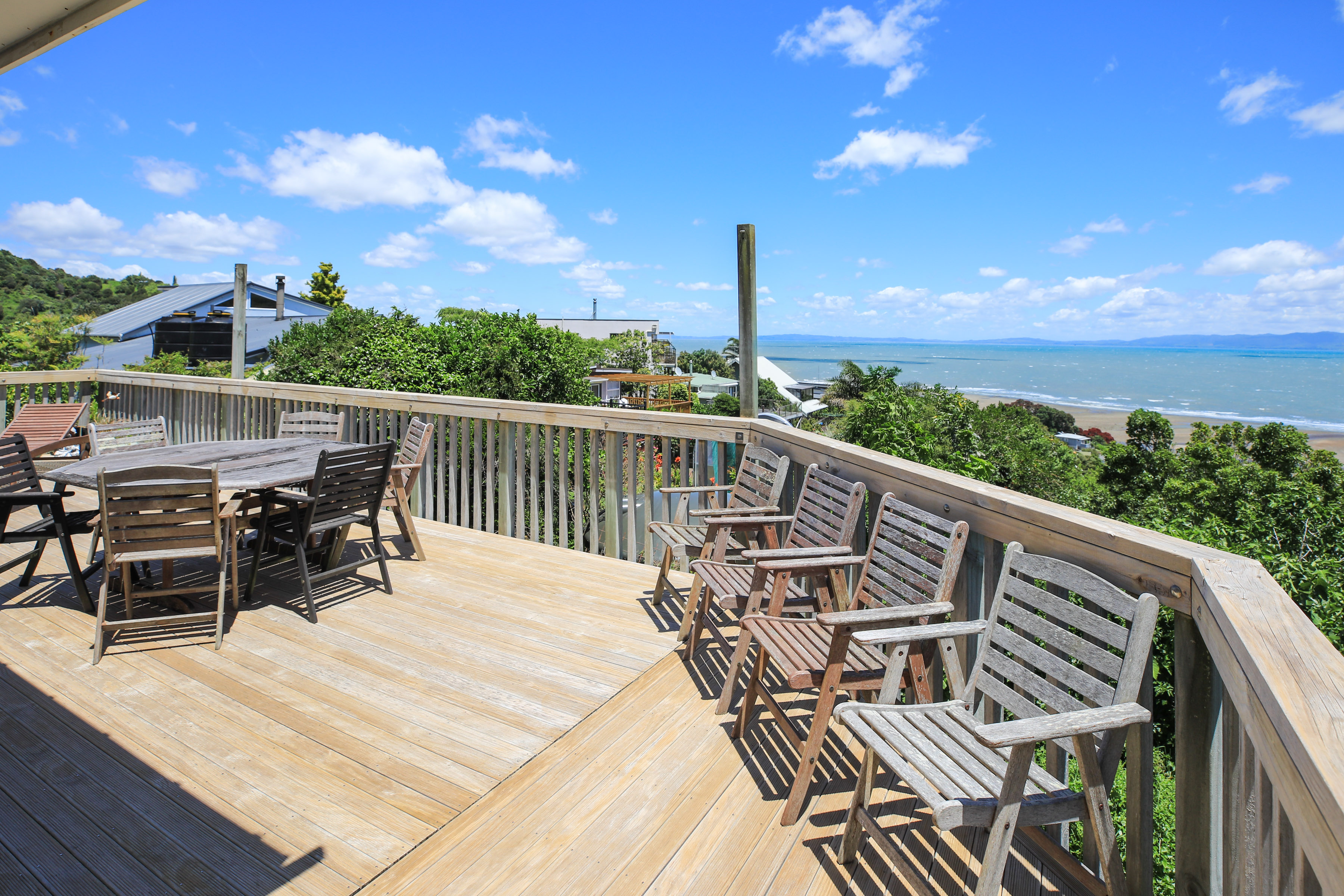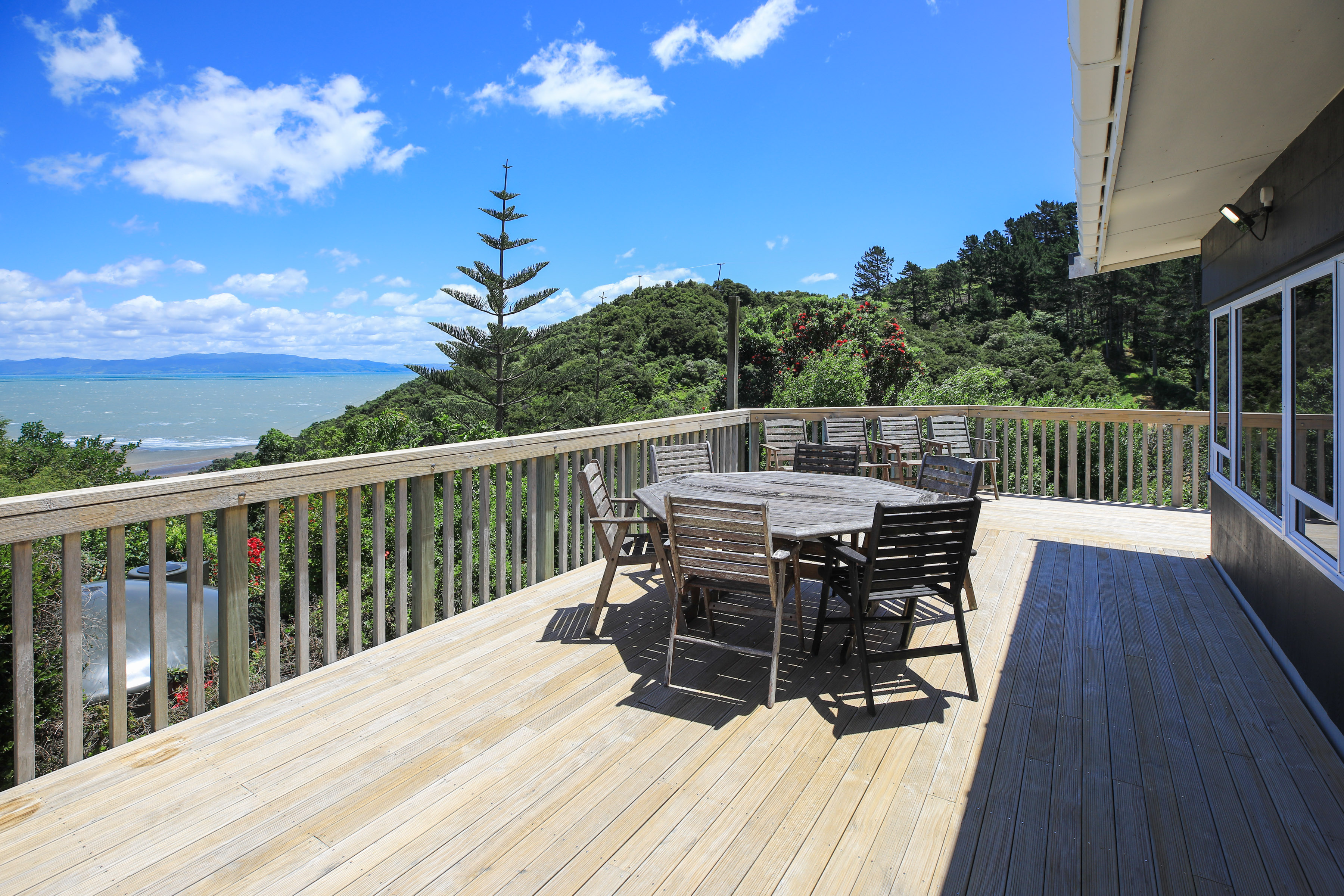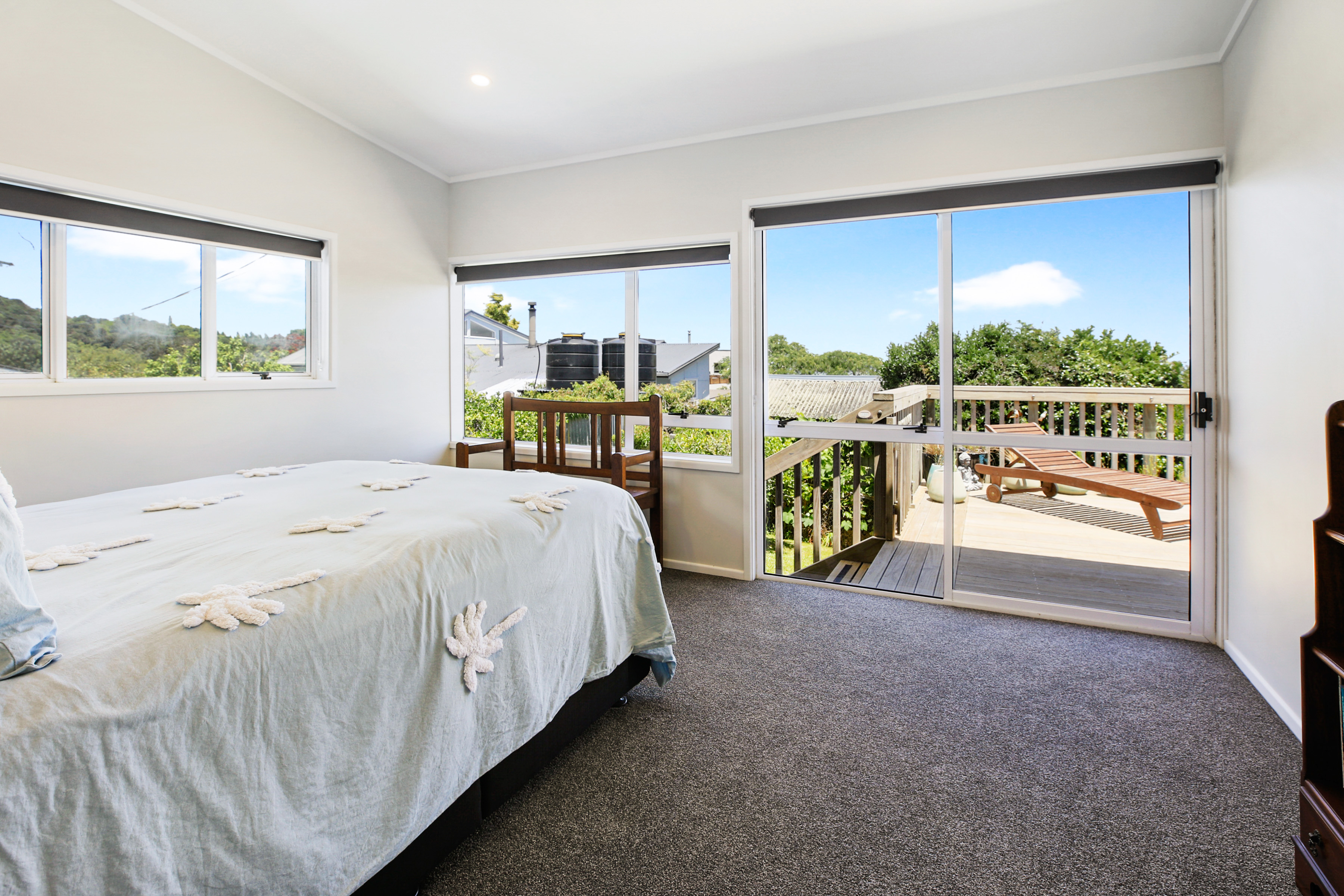 This beautifully renovated home/bach features serene neutral tones chosen to reflect and enhance the tranquil views of the ocean.