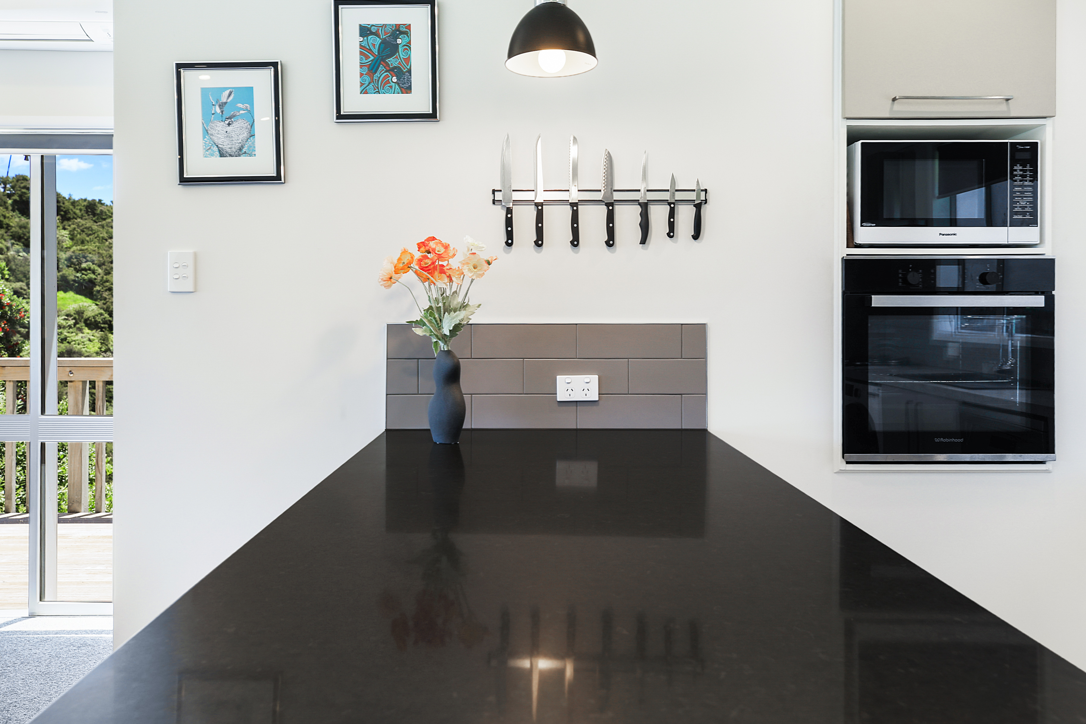 Open plan gourmet kitchen which also captures the view while cooking up a storm.