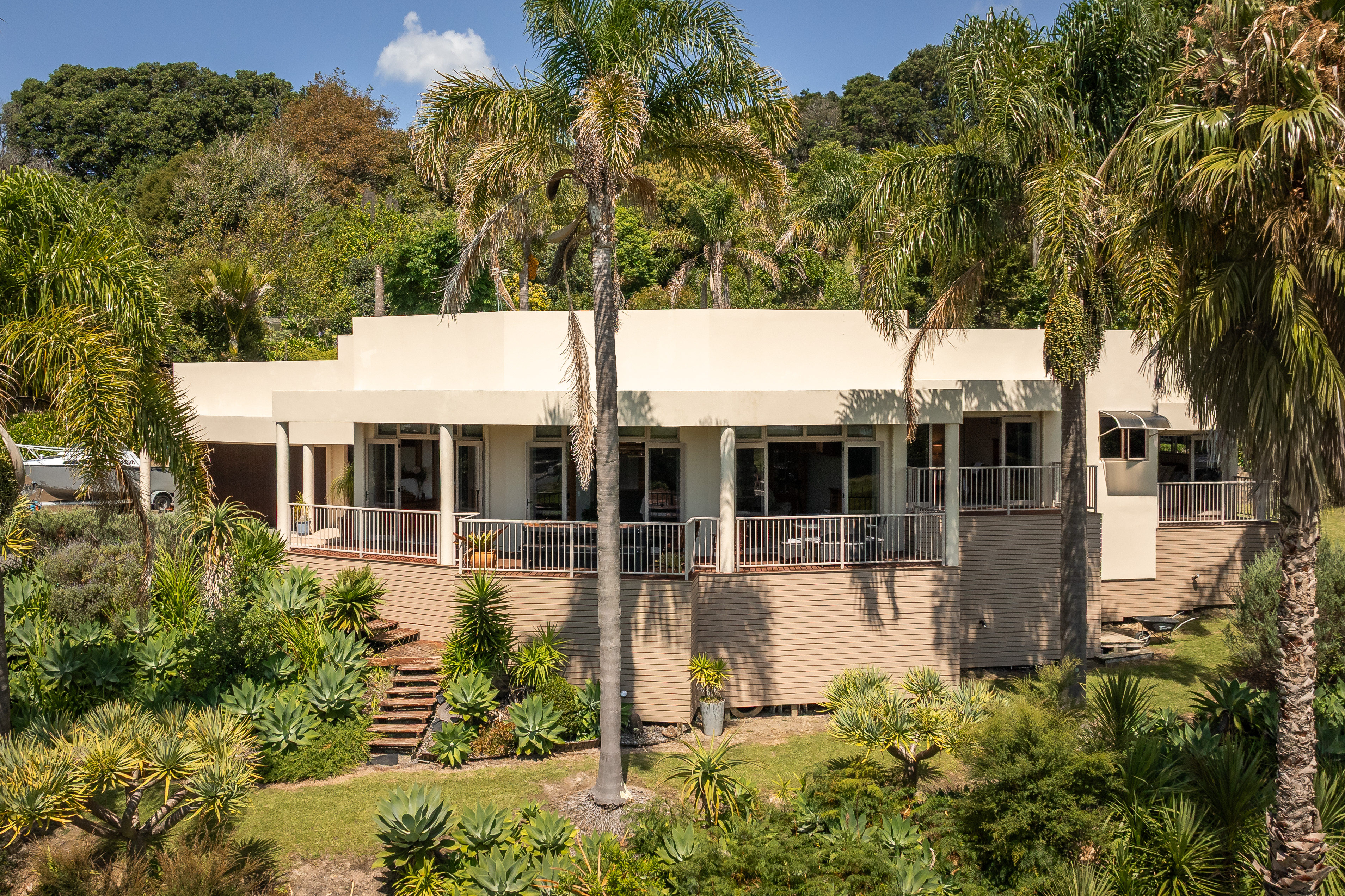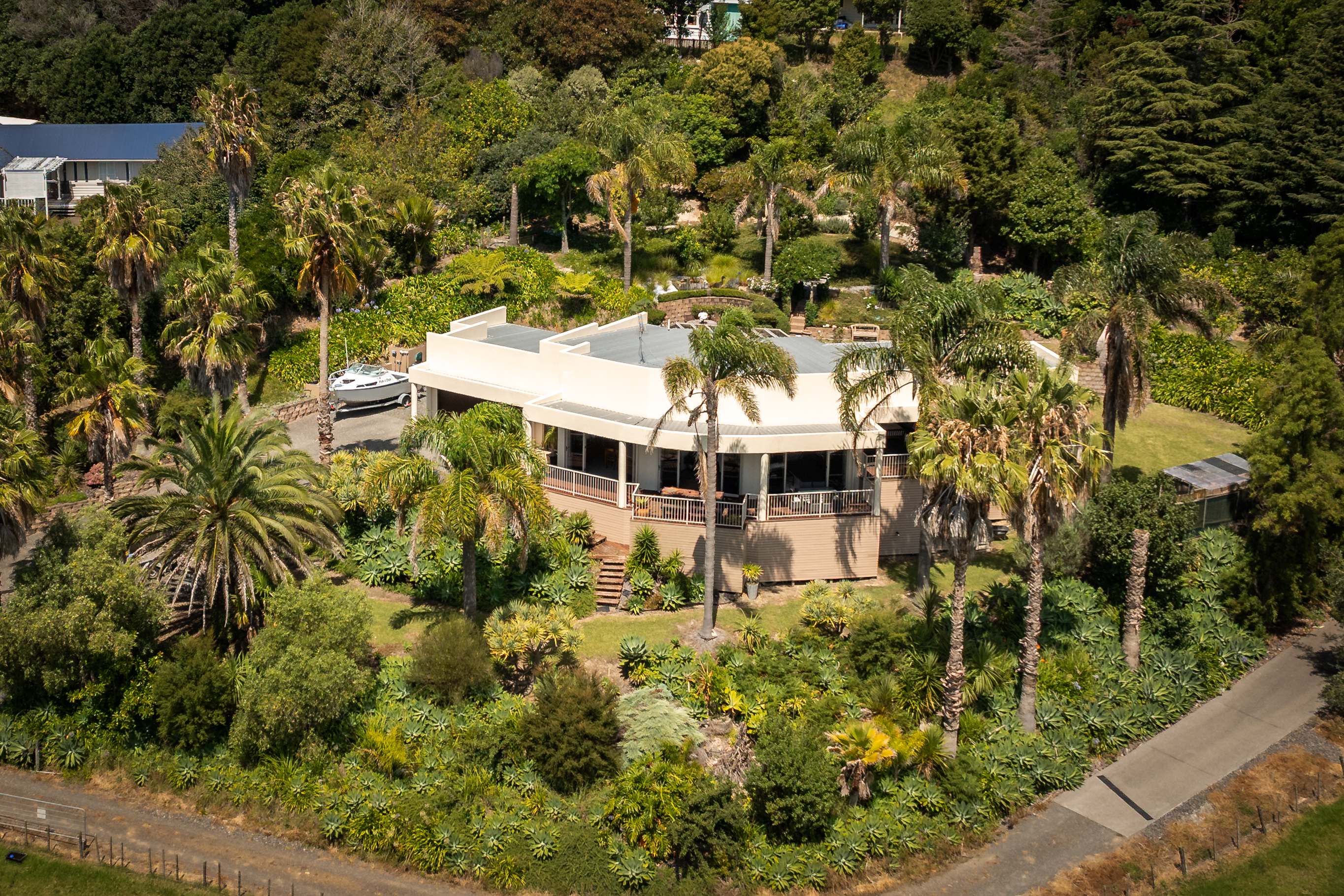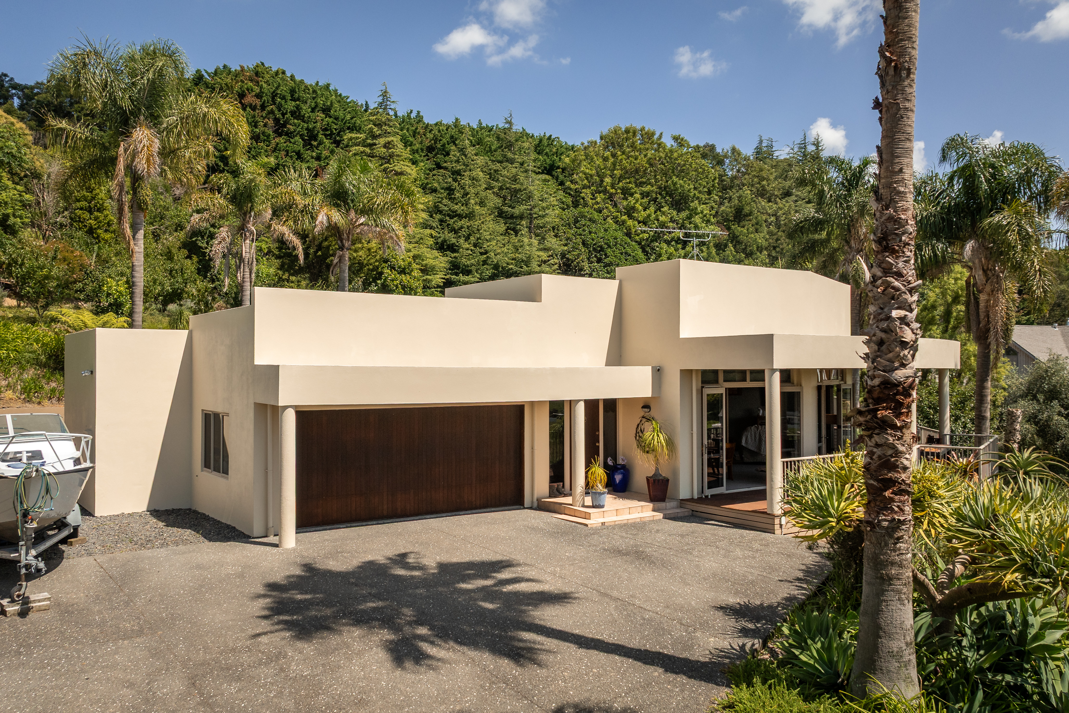 The exterior of the home is a fibrolite, plaster system (last painted 2025) and colour steel roof. The vendors have enjoyed 26 years here, are keen to downsize and are providing a recent LIM and builders report to support this. Internal access from the extra-large double garage, workshop, garden sheds, boat parking and a huge fish smoker. Town water supply and own septic. (New outdoor steps have been added since photos)