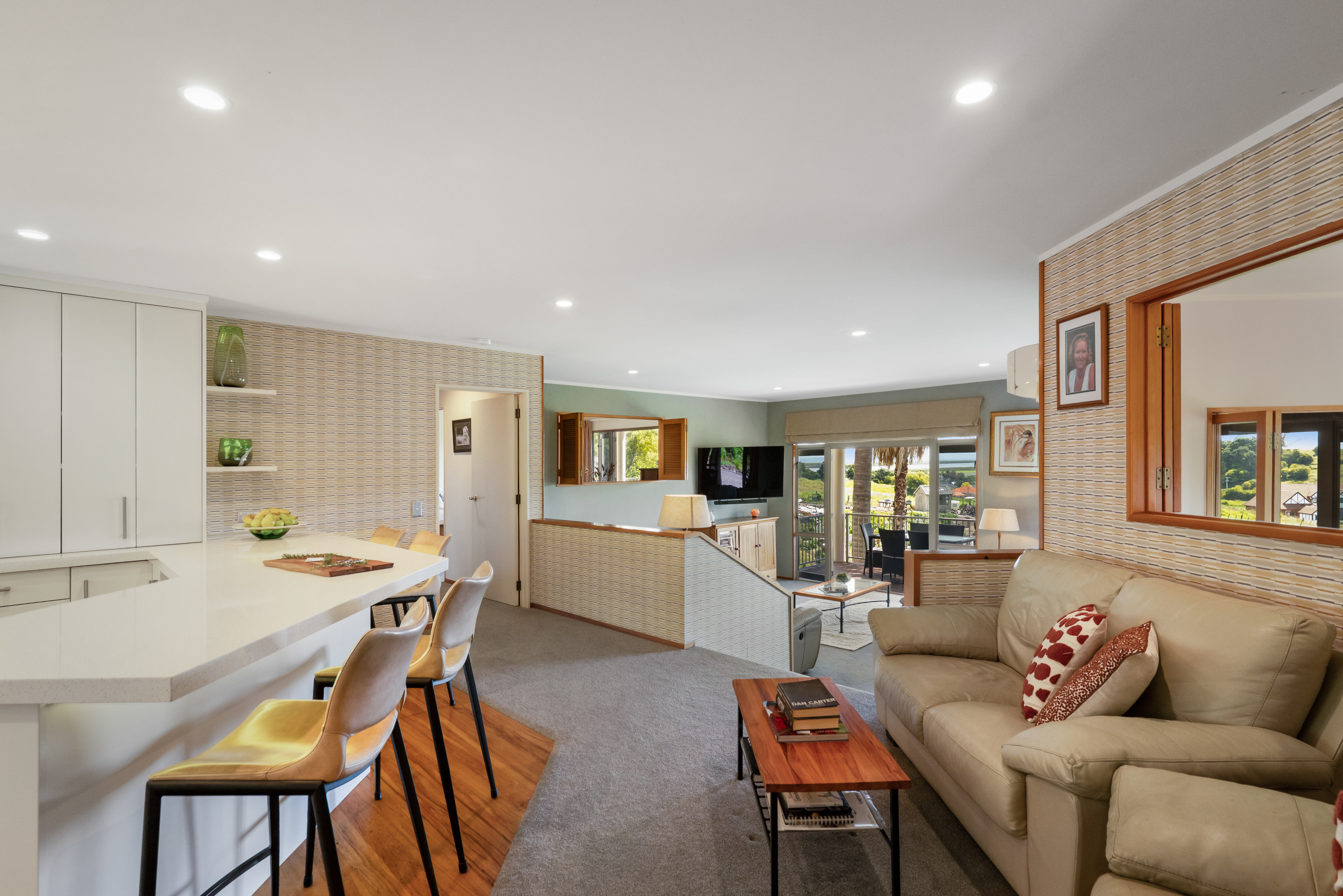 The heart of the home is a six year old chef's kitchen with a double oven, gas hob, a huge stone composite breakfast bar, under bench lighting plus sofa nook. Step down into the large main lounge with glass doors to the formal dining room. Three well-appointed bedrooms, including a master with ensuite, walk-in wardrobe and deck. A second bedroom offers a large walk-in wardrobe, dressing room and deck. For those with hobbies or work-from-home needs, the property includes a generous study (or 4th bedroom).