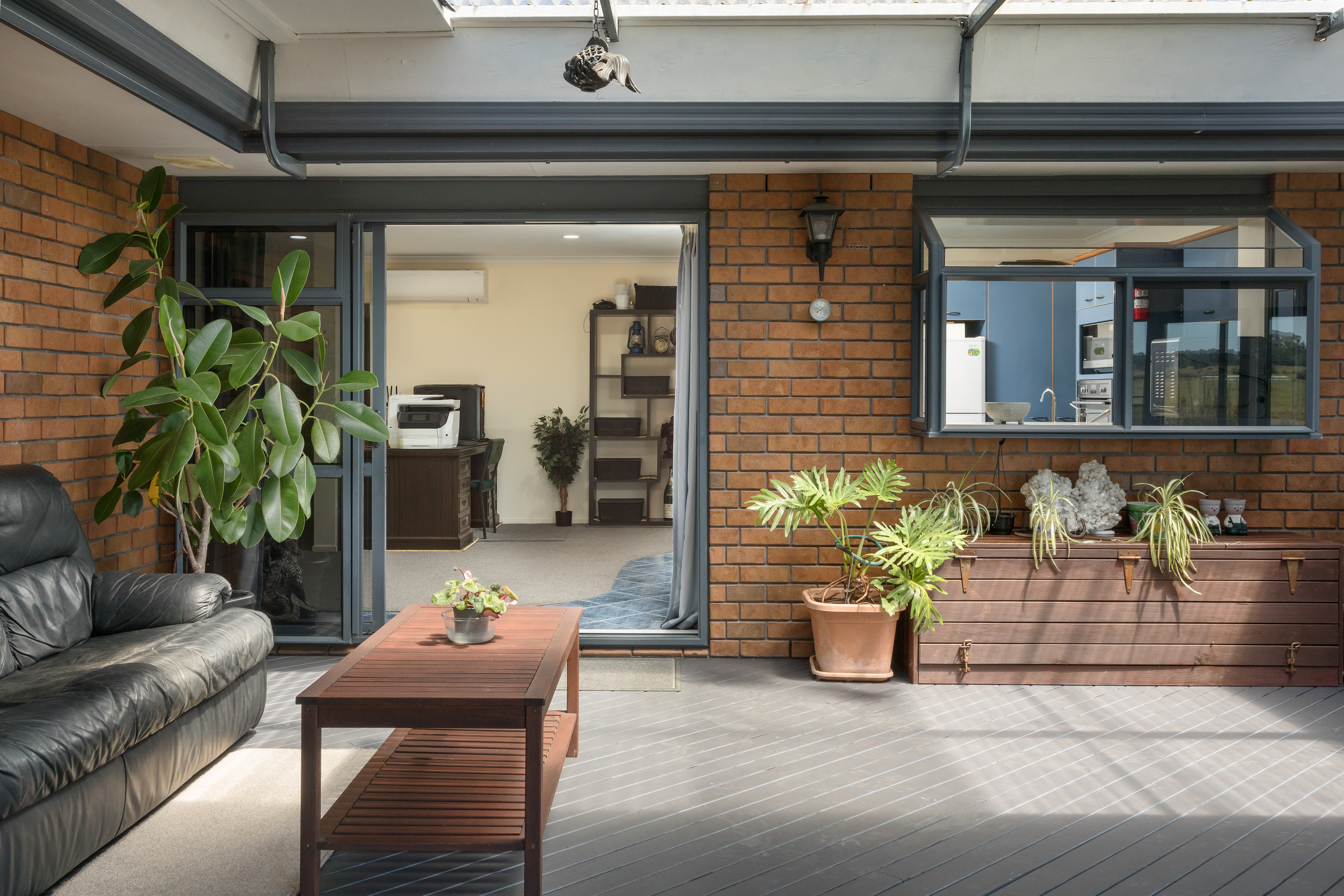 A four-bedroom, two-bathroom brick home with a double internal access garage. Plenty of storage, recessed lighting and tiled service areas. One of the key features of the home is the large fully enclosed "outdoor" living areas, positioned at the front of the home with exterior doors and wall to wall windows leading out onto a sheltered deck area. This will become your favourite spot to relax with a cup of coffee in the morning soaking in the uninterrupted views over Aongatete River right out to the Tauranga Harbour and Matakana. Or star gazing at nighttime, the sunsets are spectacular!