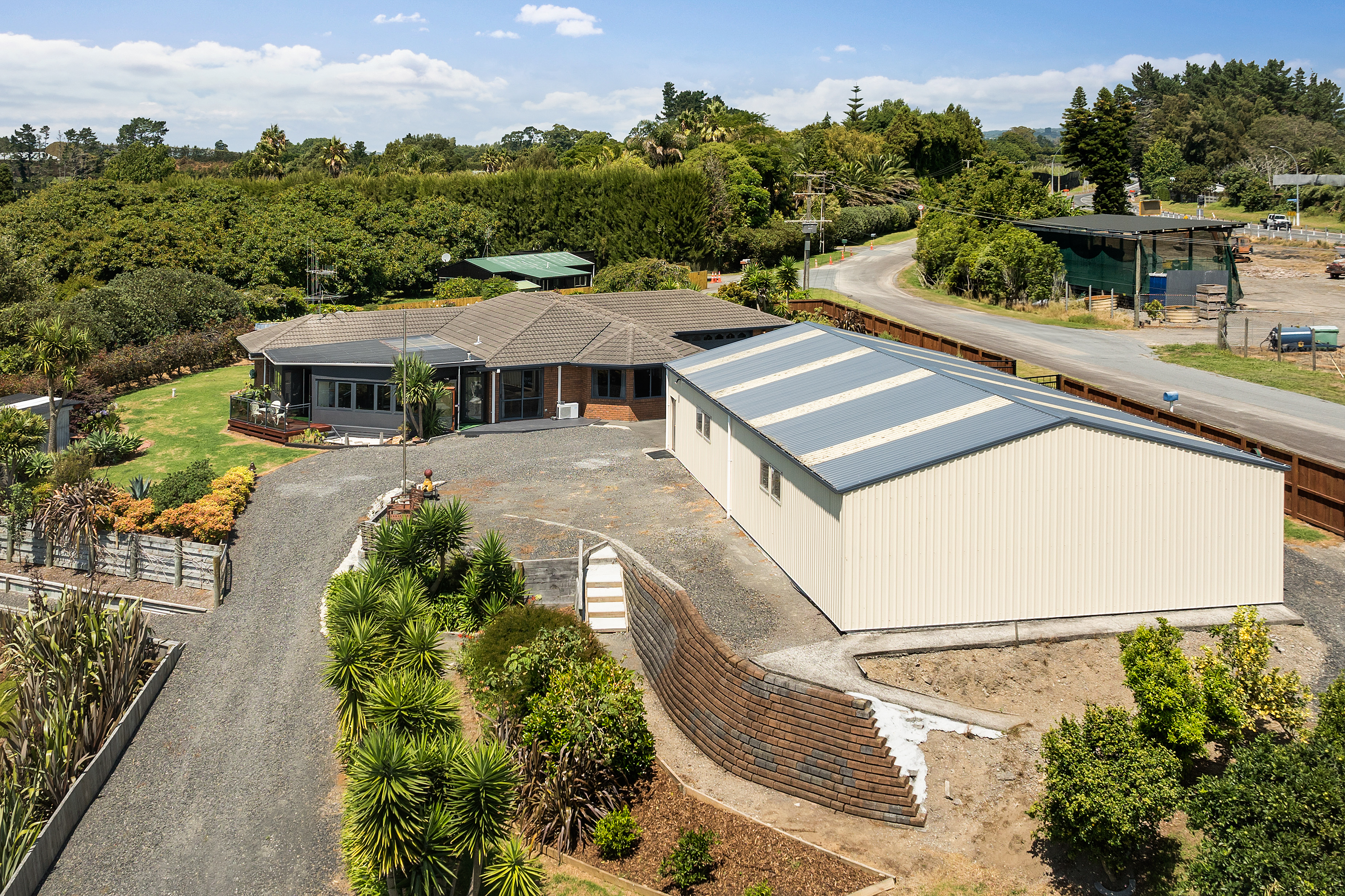 On the lower level of the property is another workshop approx. 68m2, steel frame, Coloursteel exterior and roof with roller doors at either end providing drive through access. Plus shipping containers and a carport for extra storage/workshop space. The driveway is set up to run right through the property with a second exit at the Aongatete road boundary making it ideal for trucks and other large vehicles.