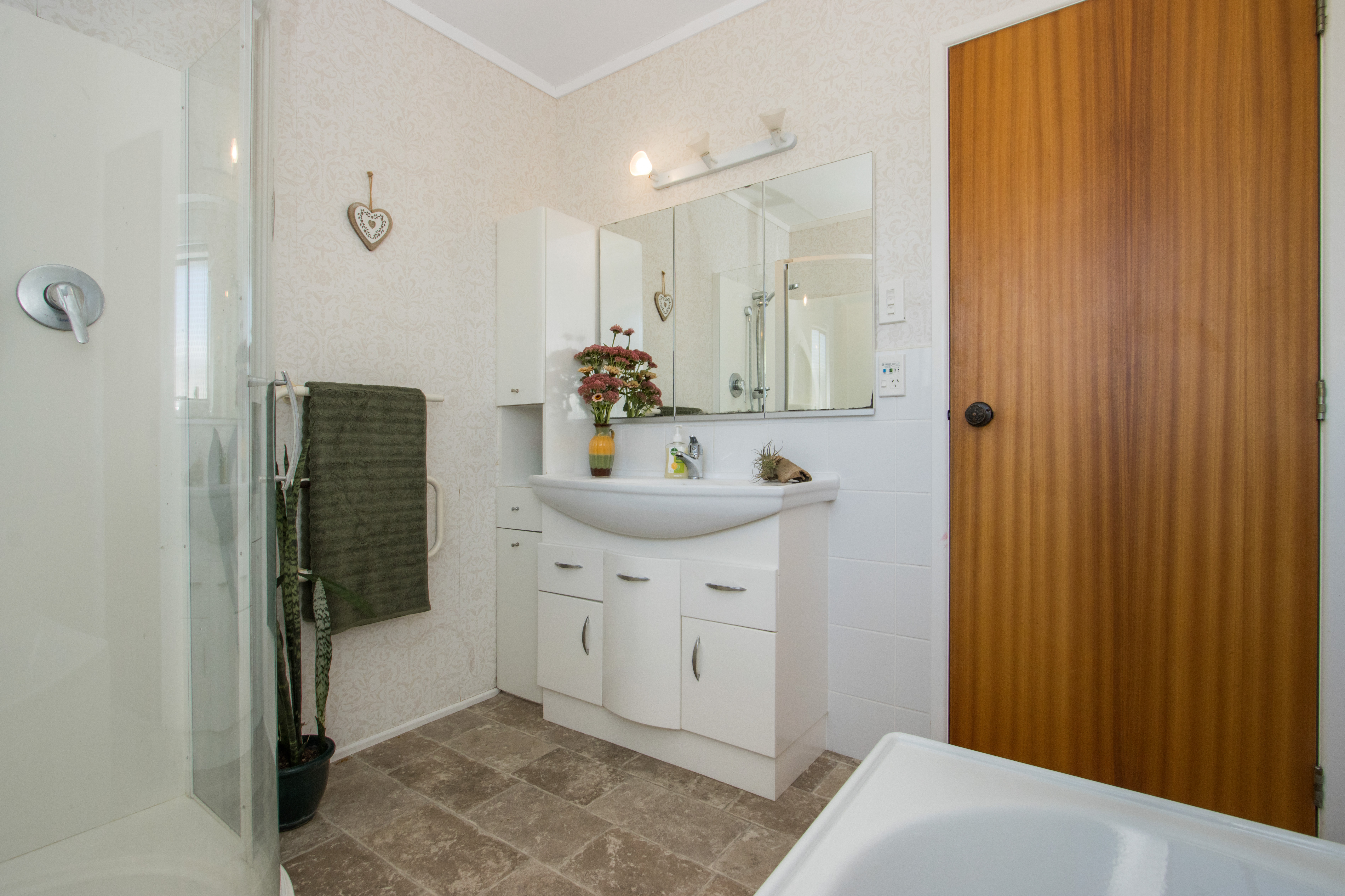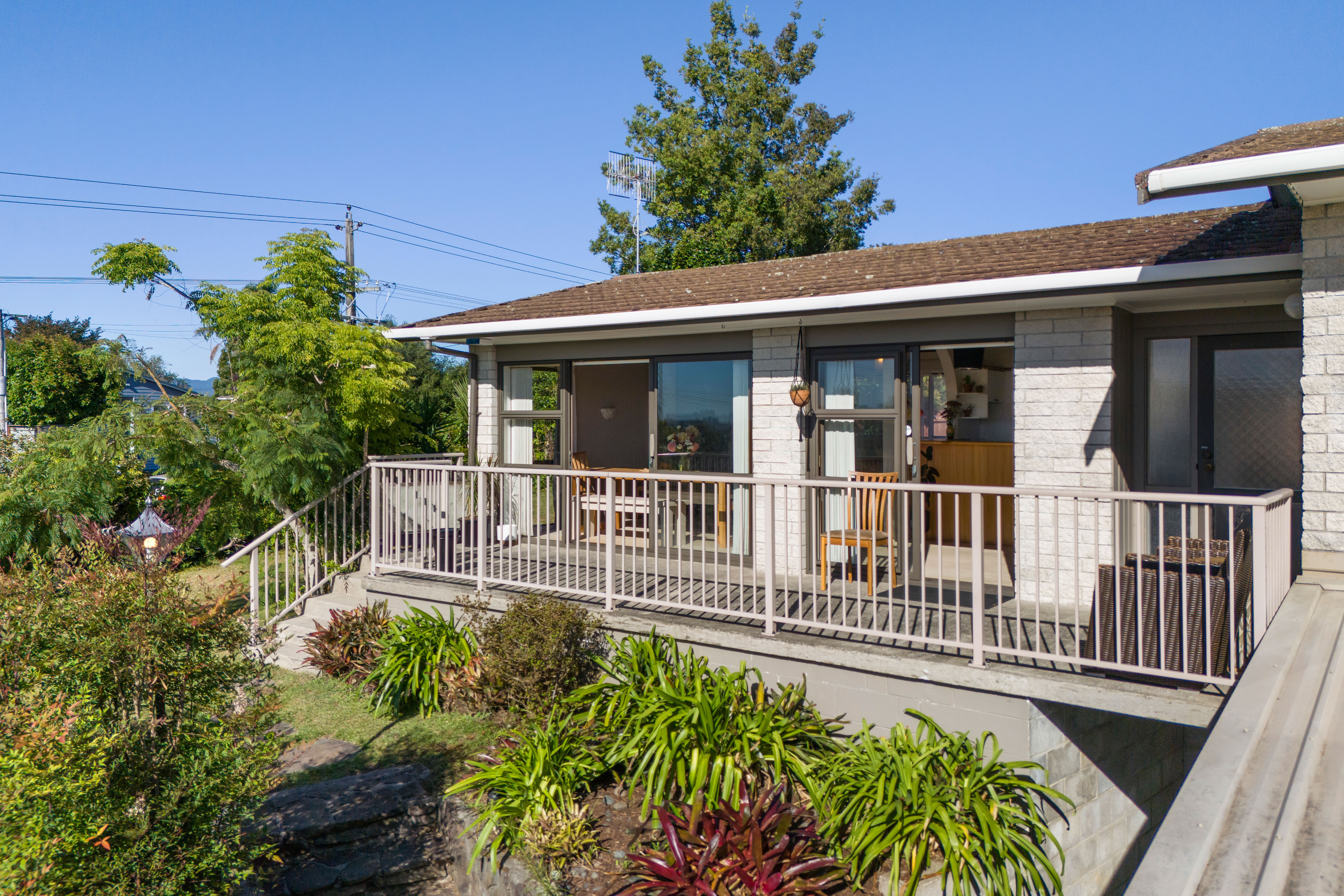 The Open Plan living/dining and kitchen is a functional family space and with the Stark ceilings that creates a spacious feel, and an elevated view from the deck. The bathroom has a separate shower and a bath and vanity, toilet is separate.