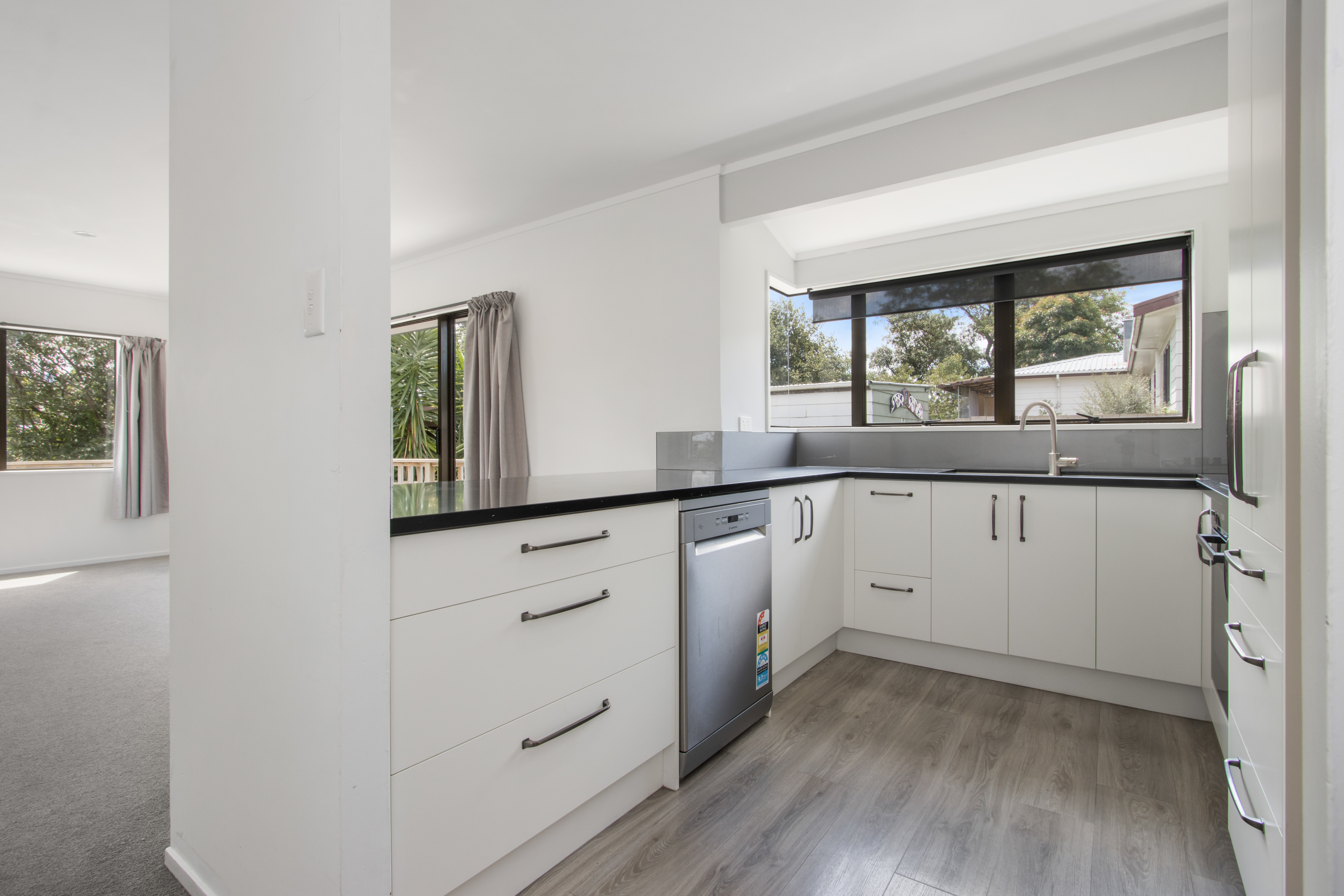 The contemporary kitchen sits at the heart of the home and flows seamlessly into open-plan living, opening out to a small deck. Excellent under-house storage adds to the home's practicality.