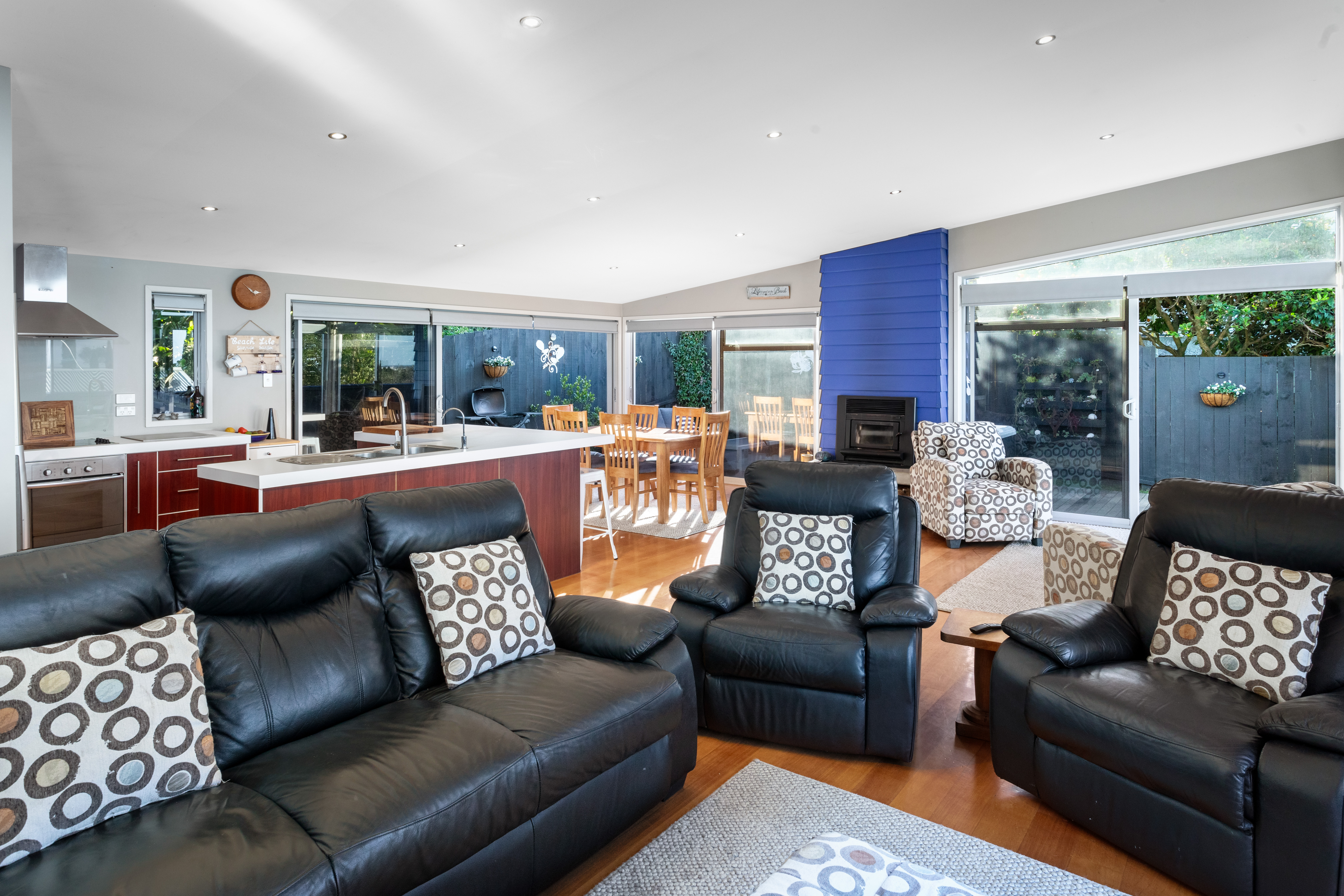 The master has an outlook to native punga and the ocean - a view worth waking up for. It has a walk-through wardrobe and an ensuite. There are 3 more guest bedrooms, a family bathroom with a tub, a separate toilet and a spacious separate laundry.