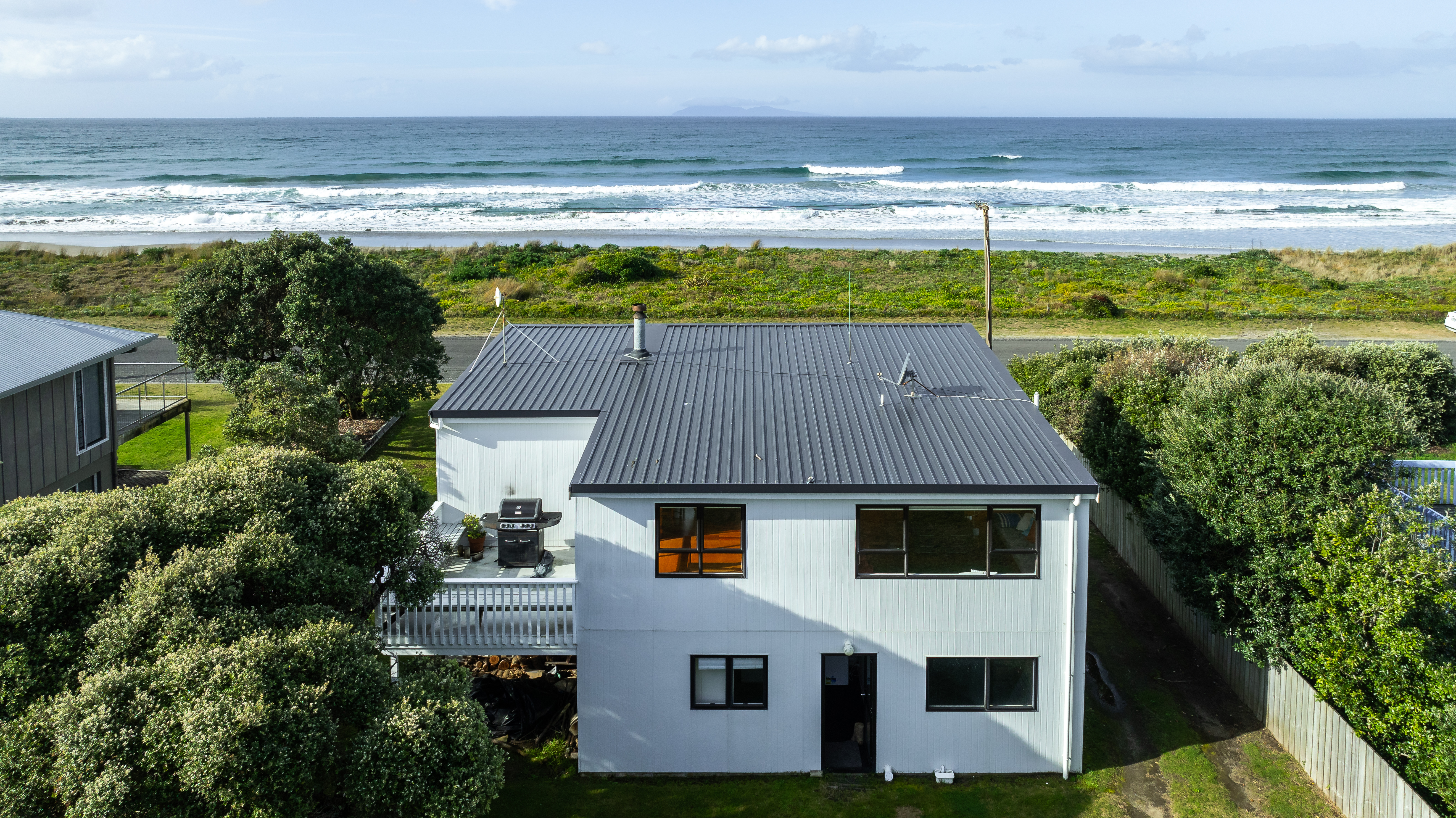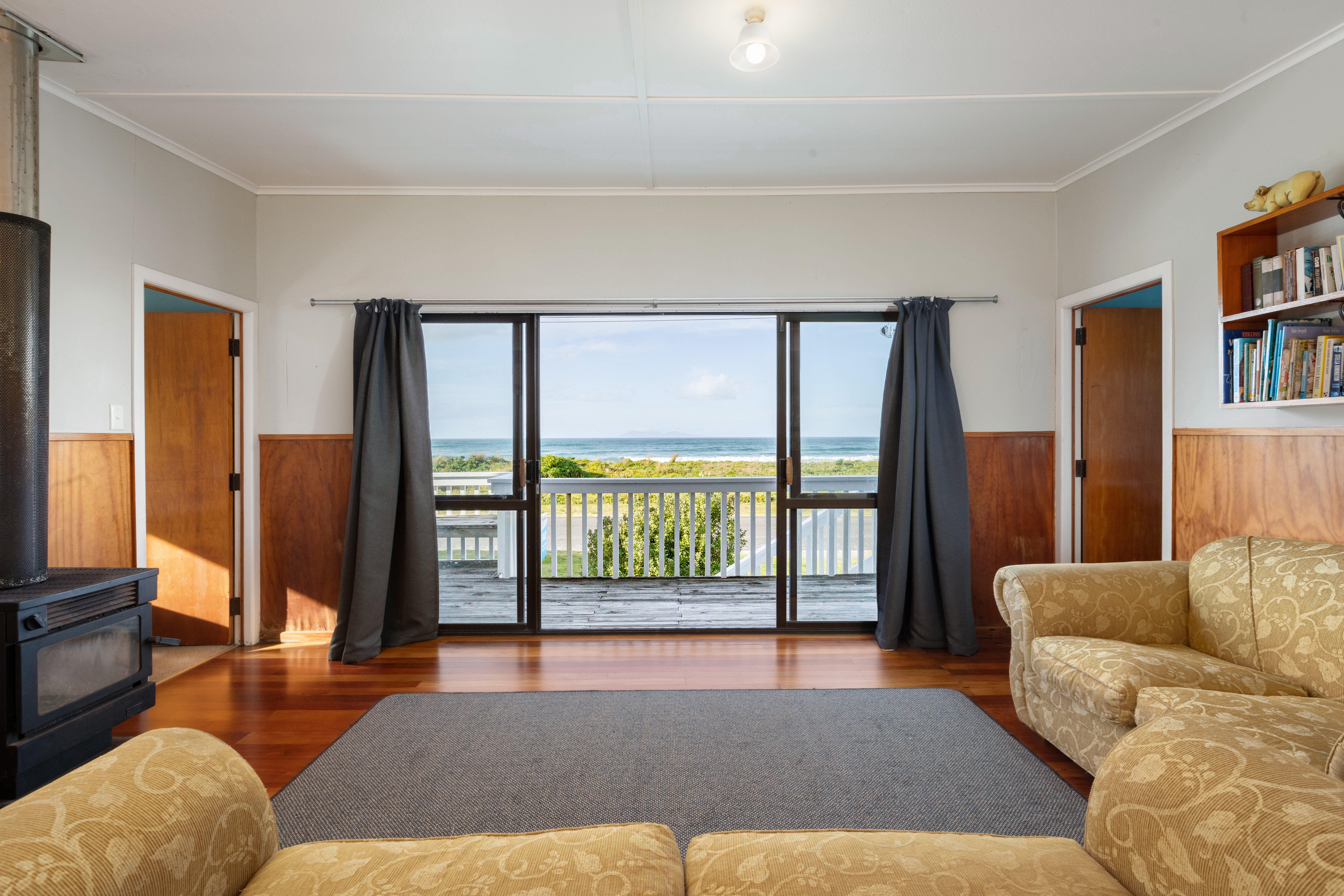 Relax and enjoy uninterrupted sea views from the spacious deck. Be spellbound by the sunrise and moonrise, and the everchanging colours and moods of the ocean. Walk across the road to the beach.