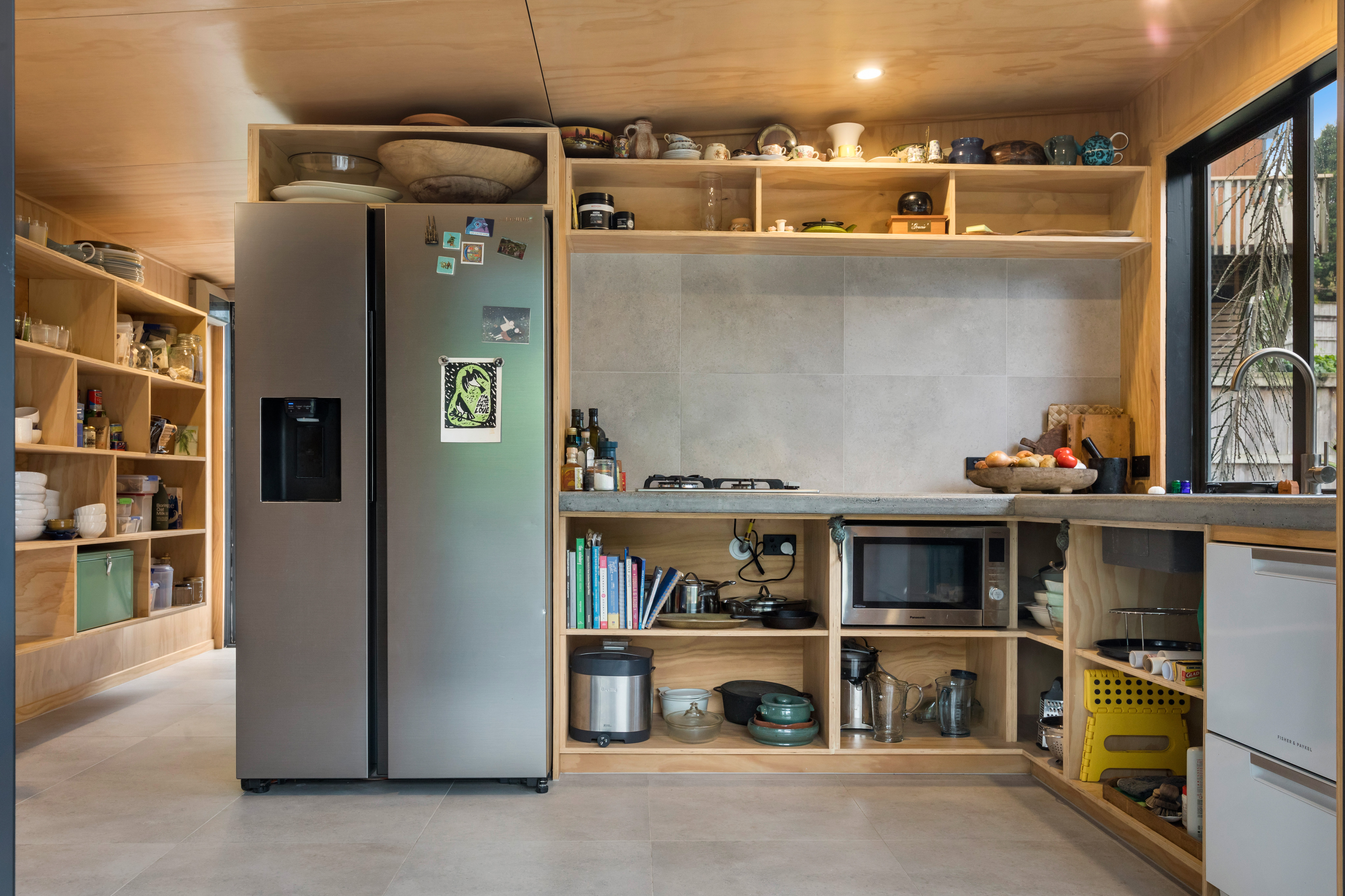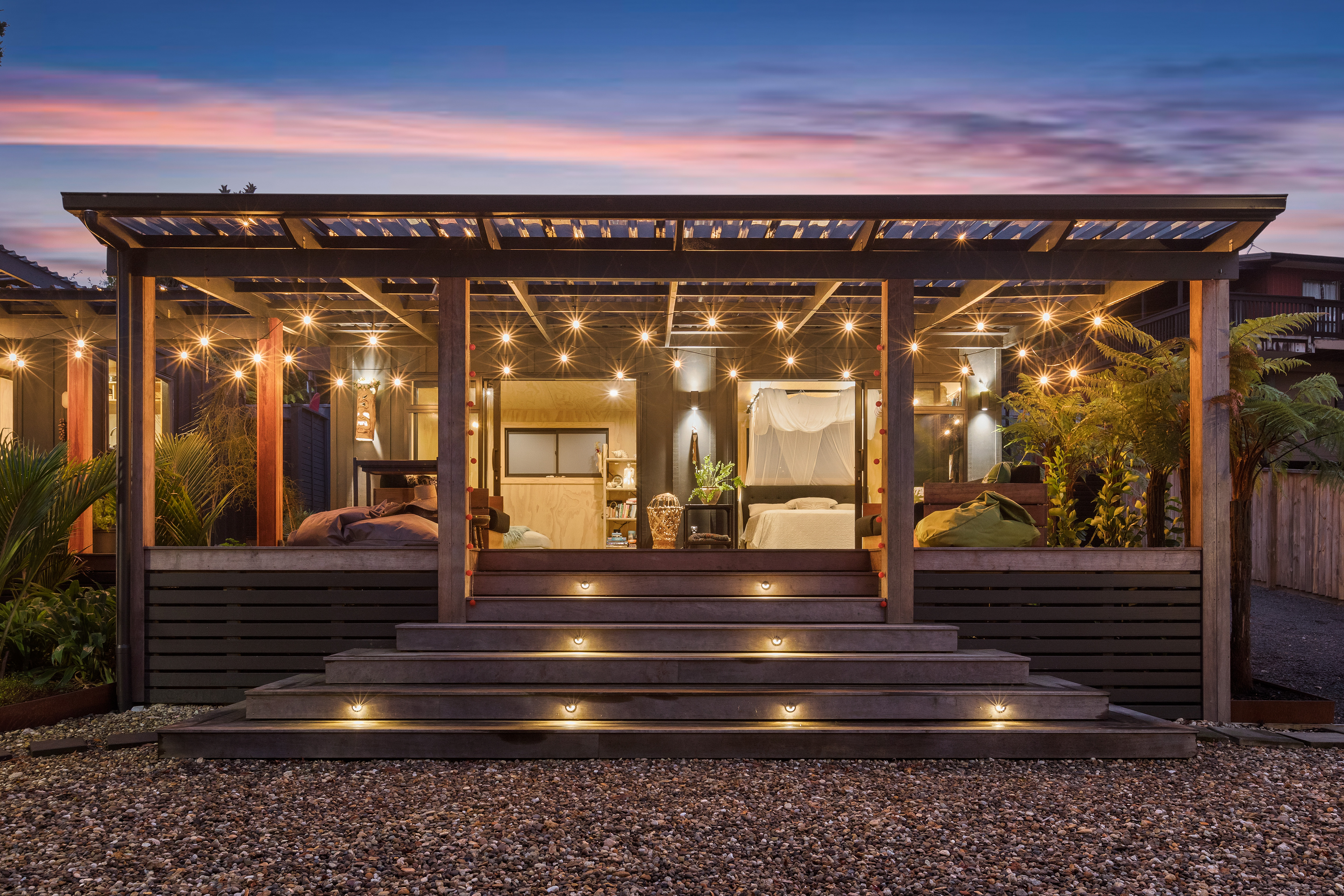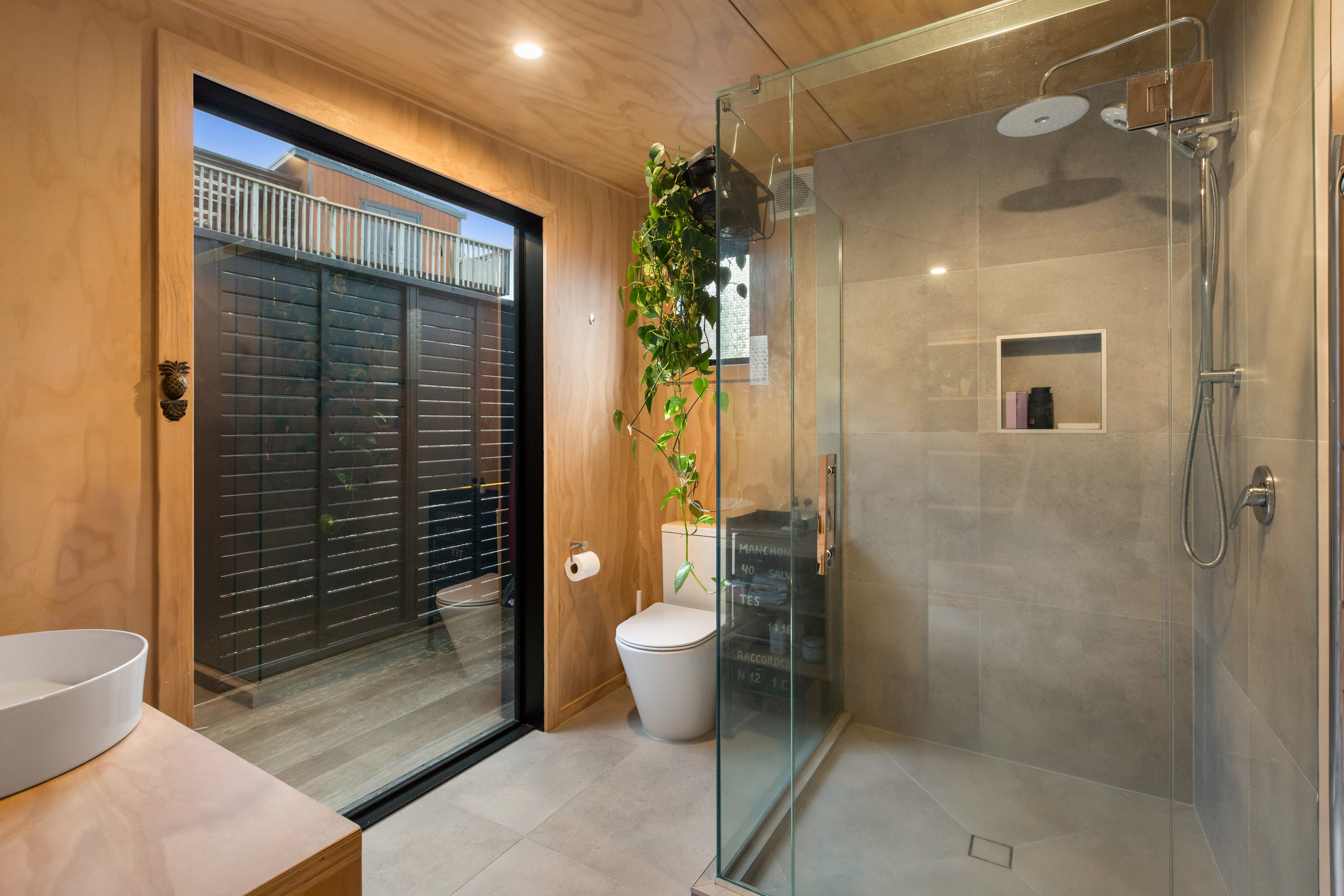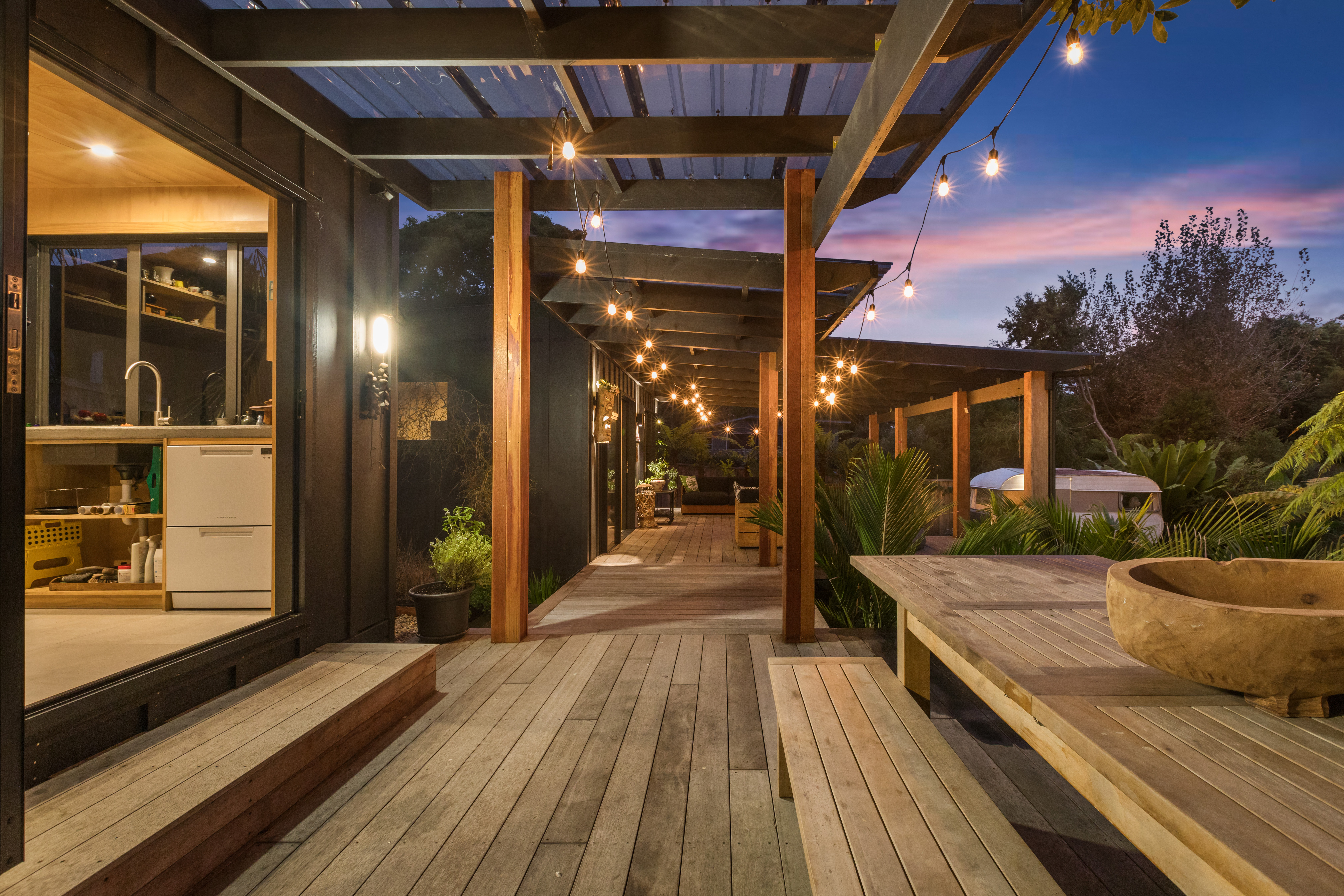 The second pod houses the kitchen, bathroom, and laundry, with the bonus of a private outdoor shower tucked away at the back-complete with hot and cold water. Just behind, a spacious storage shed offers plenty of room for surfboards, bikes, and all your beach essentials.