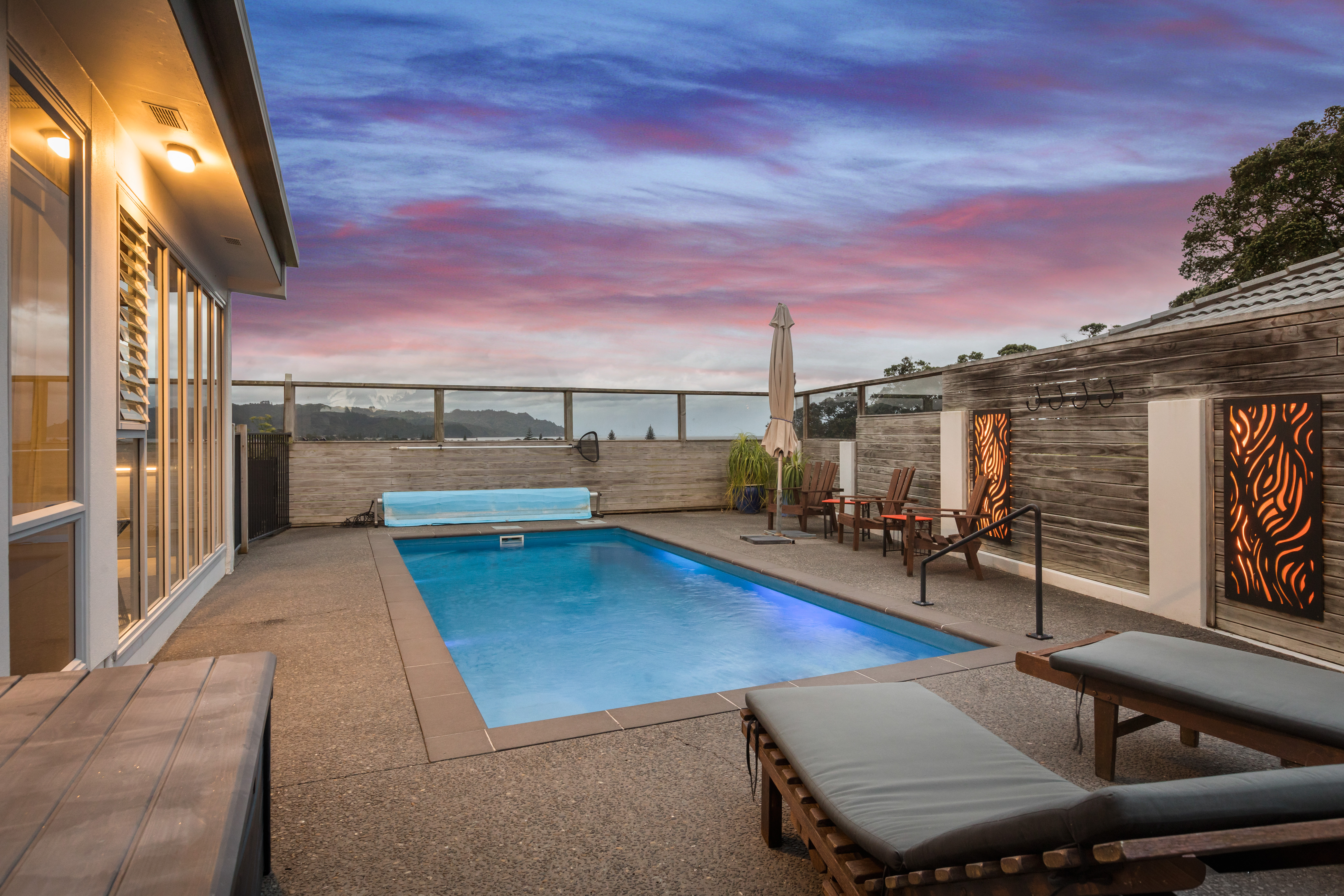 Prepare to be captivated from the moment you cross the threshold. At 147 Koutunui Road, the world seems to open up before you, revealing a breath-taking unobstructed panorama where rural greens melt into the deep blue of the sea. This isn't just a residence; it is a front-row seat to nature's most magnificent displays. Nestled on a generous 892 sqm lot, this impressive 320 sqm home is designed for families seeking both space and style. This beautifully appointed house boasts four generous bedrooms, providing ample space for family and guests. With three well-designed bathrooms, including the master ensuite, morning routines will be a breeze for everyone in the household.