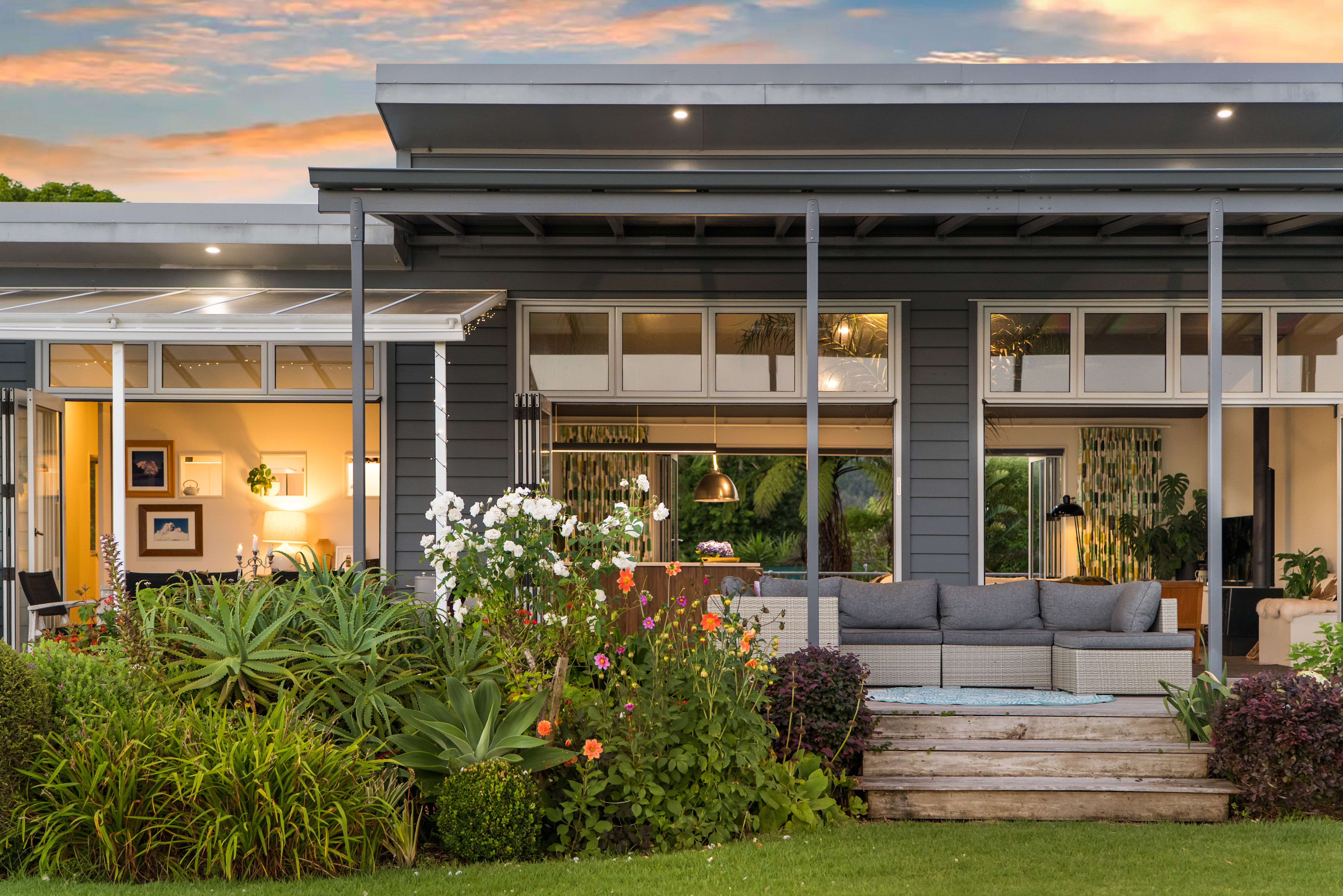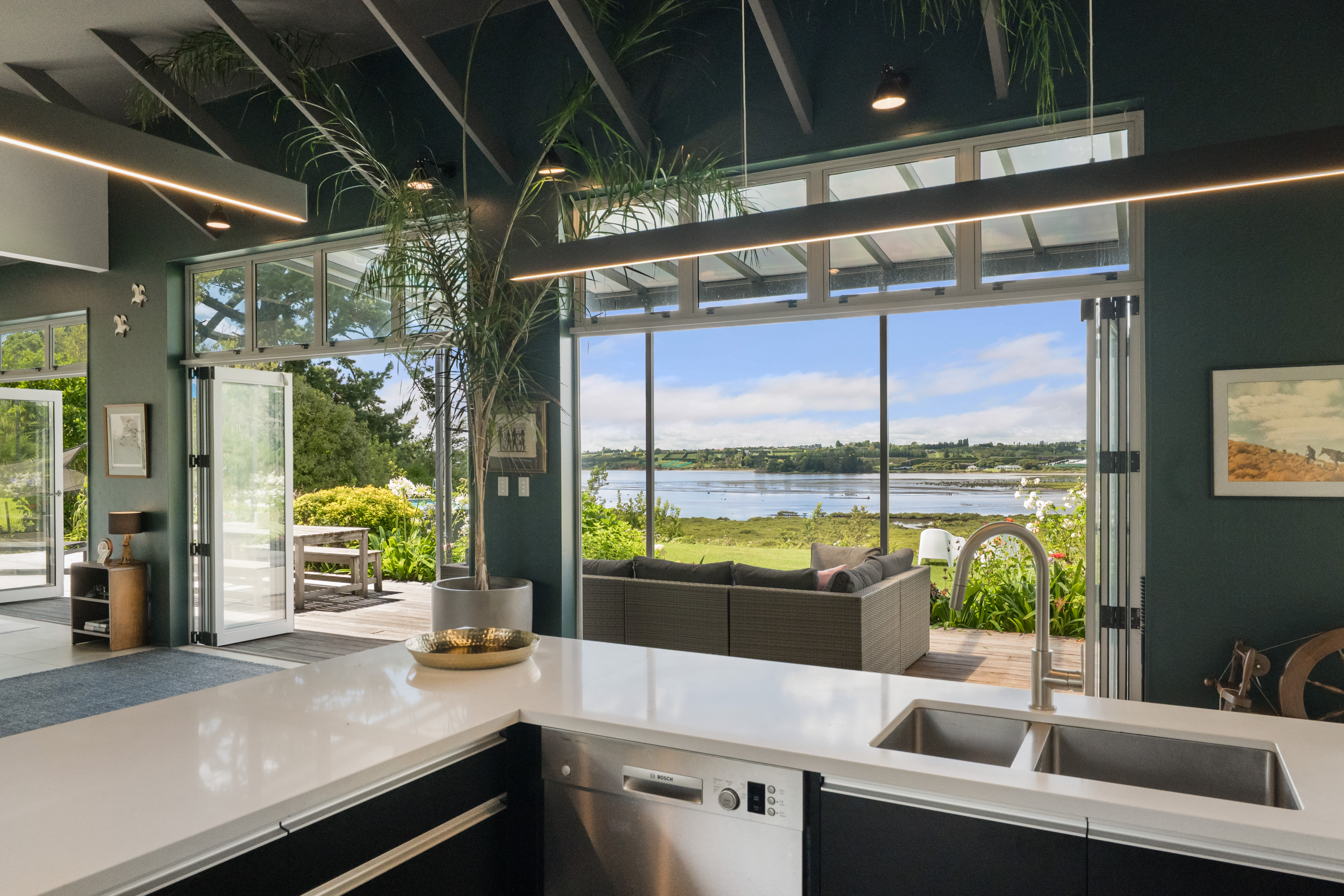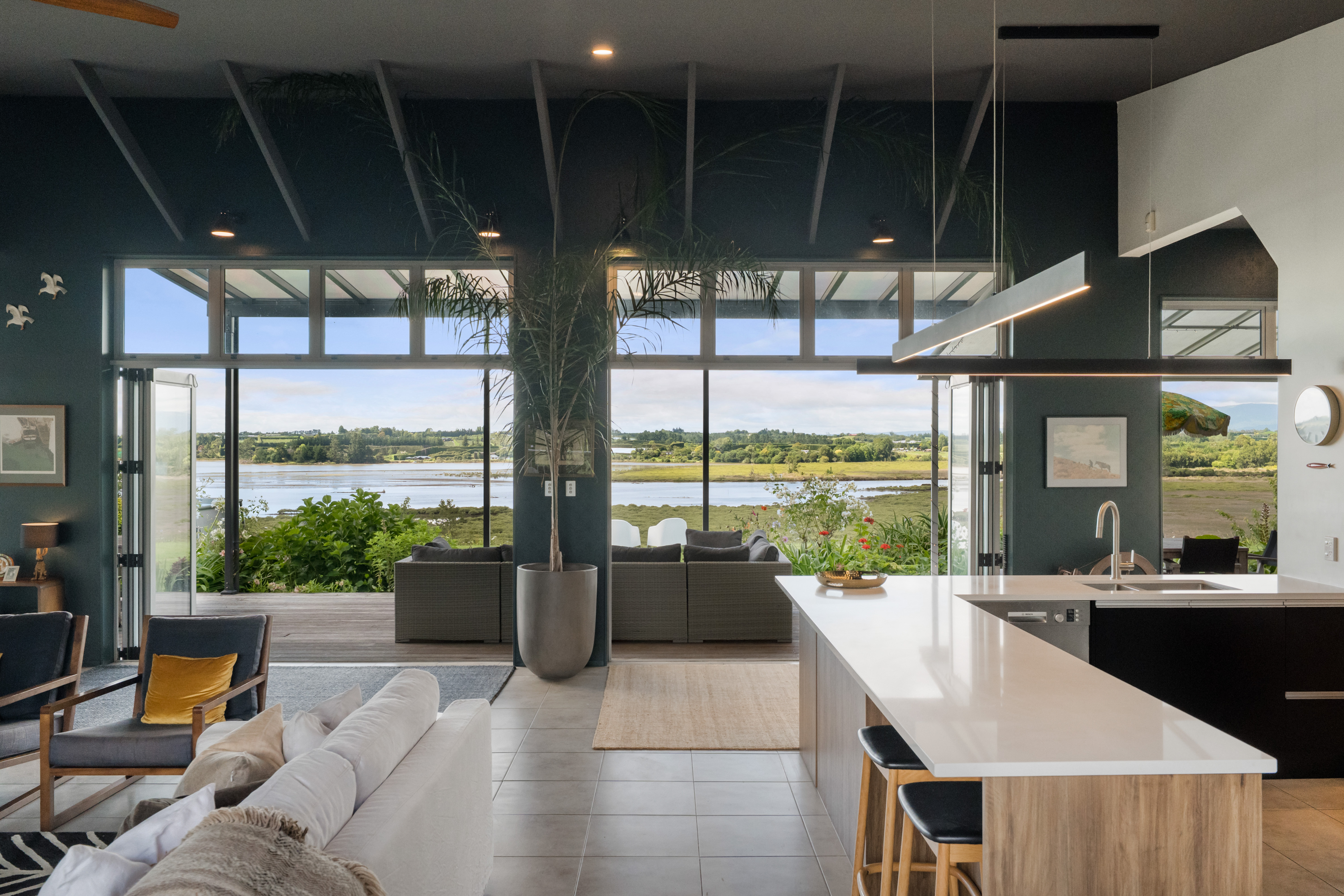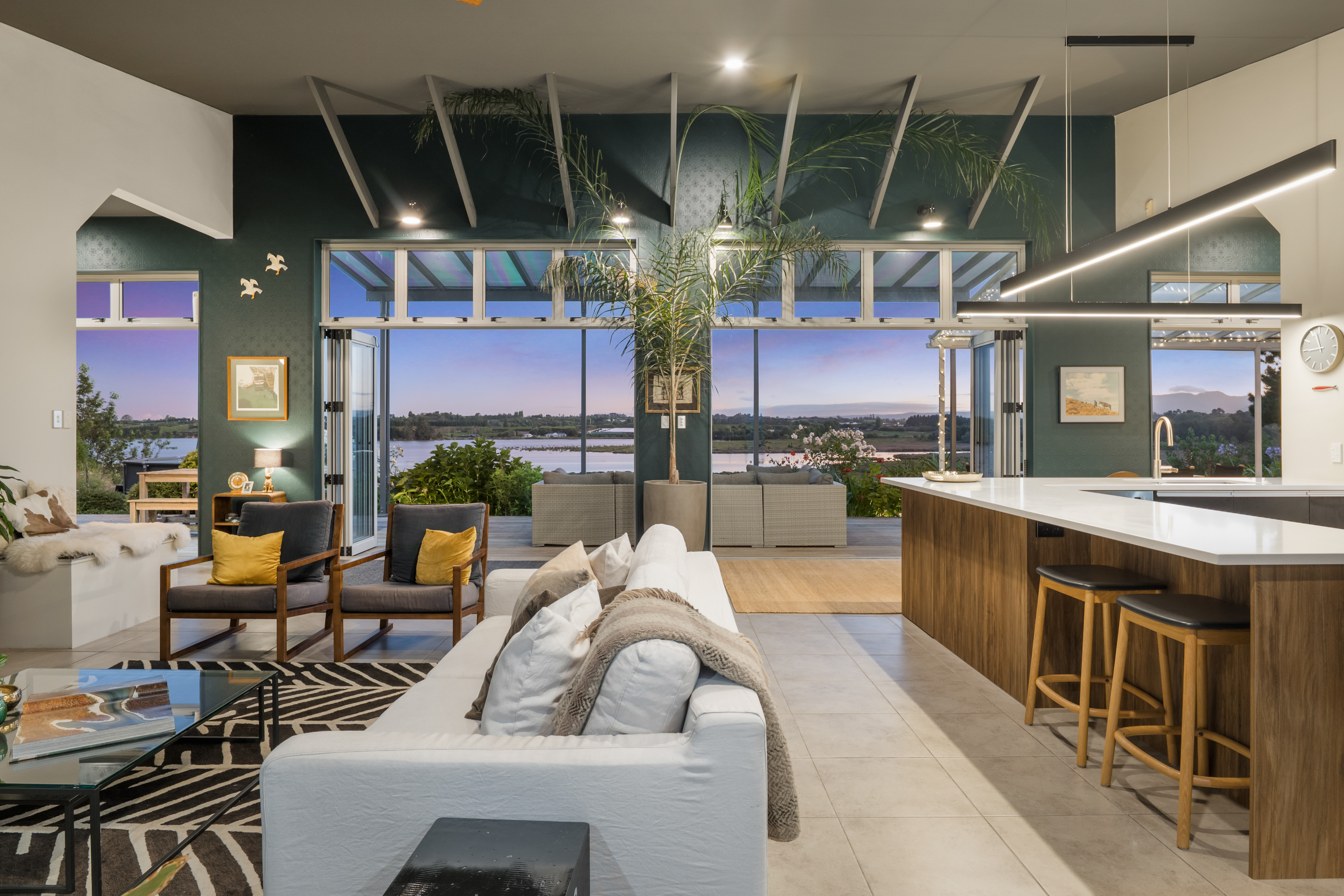 Designed for effortless day-to-day living and relaxed entertaining, the home features sensational indoor-outdoor flow, three bedrooms, two studies/sleeping areas for overflow guests, two bathrooms, modern kitchen with scullery, and two internal-access double garages. Additional off-street parking easily accommodates multiple vehicles and a boat or camper, making it ideal for those who value space, privacy, and flexibility. Plenty of space to build separate garaging or the workshop/shed of your dreams.