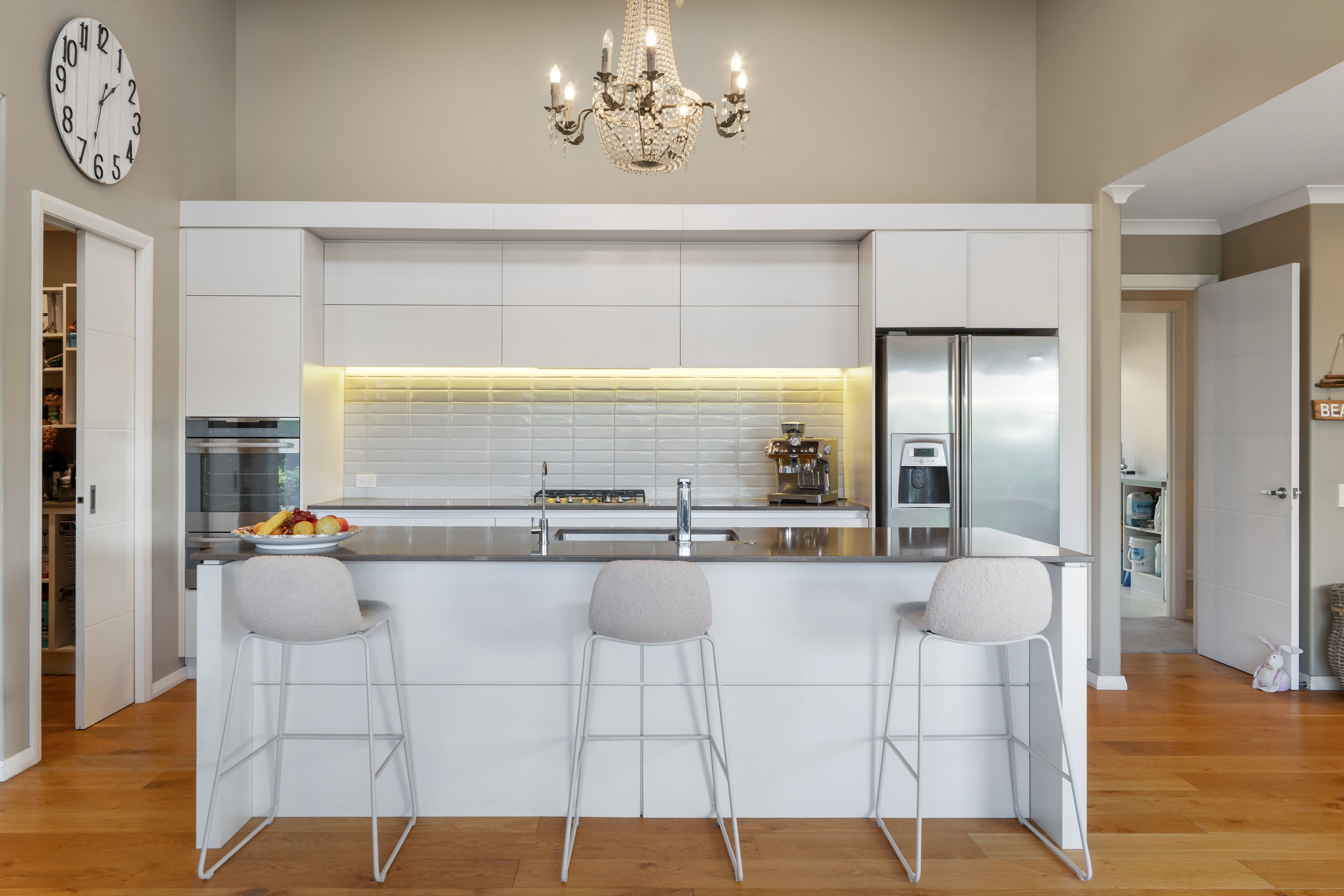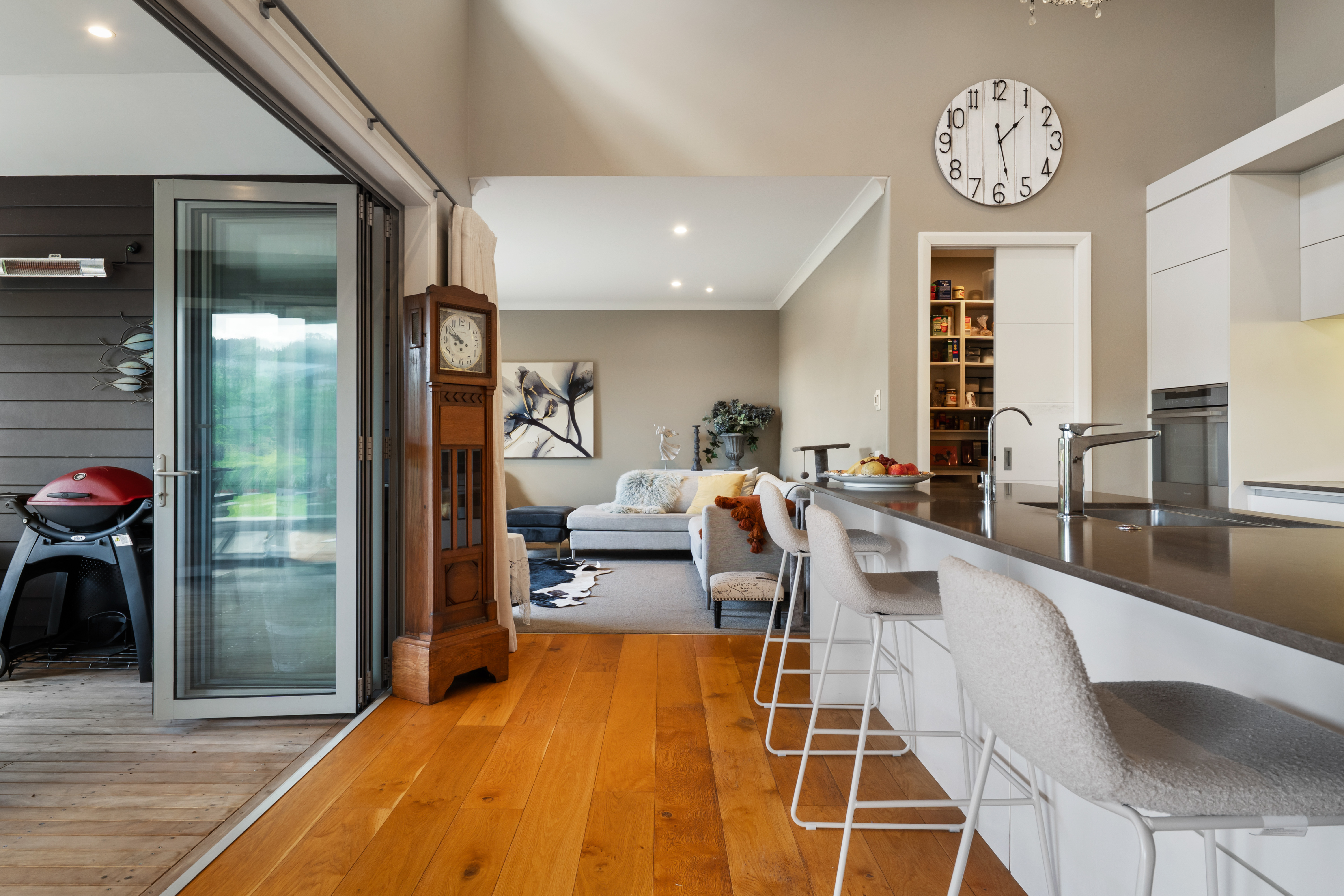 Modern and stylish, it features high ceilings, a spacious open plan kitchen with scullery and designated dining and living areas, leading out through the bi-fold doors to the huge covered entertainment area.
